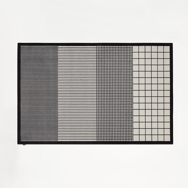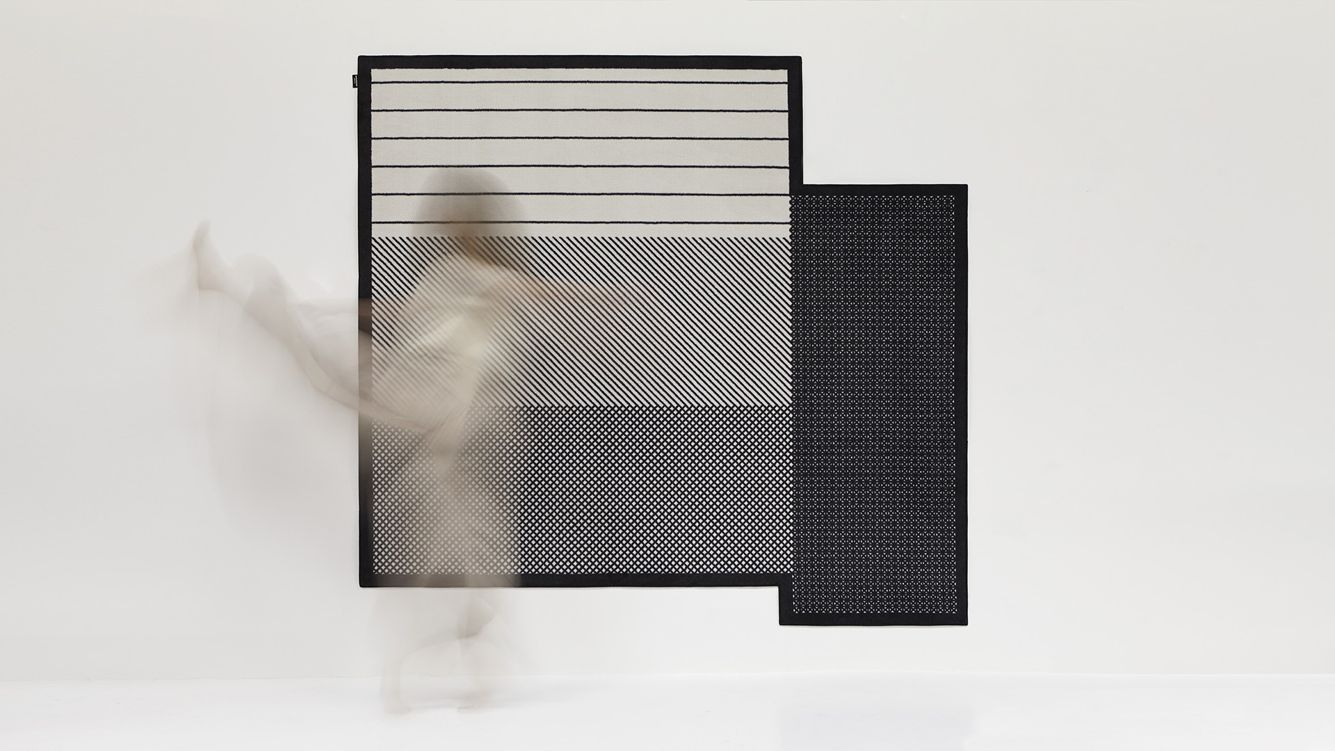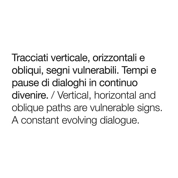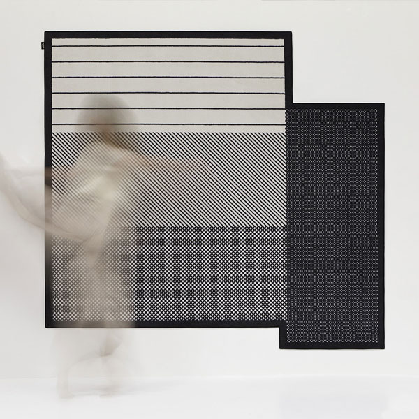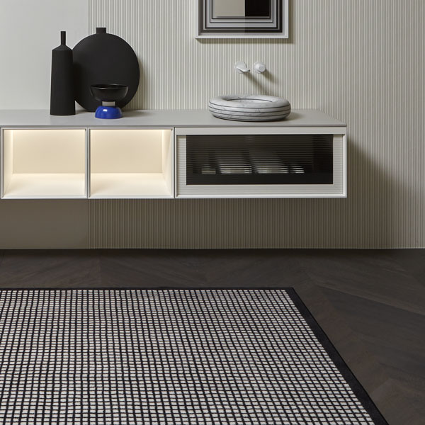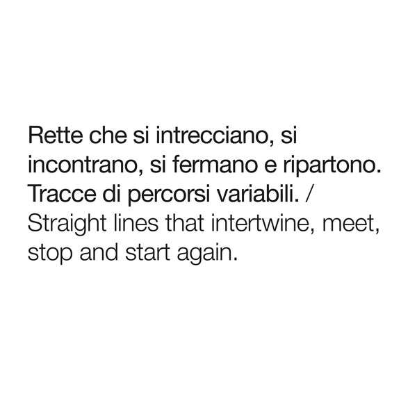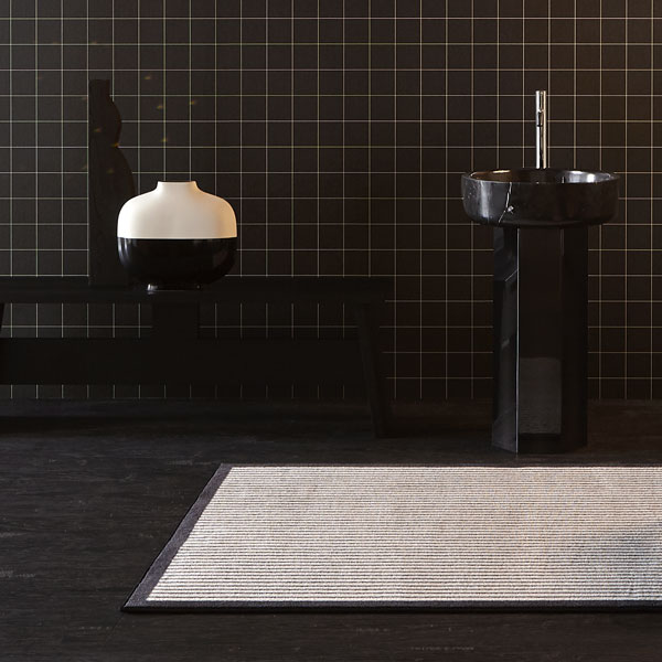 As in the wallpaper collection, TRALERIGHE, also in this collection all the carpet decorations are marked by horizontal, vertical and oblique lines that intersect as if they were alive in continuous motion. The contract between WHITE and BLACK creates light and transmits intensity. The white is not a pure white, but an almost muffled warm white which, combined with black, creates shades of different depths.