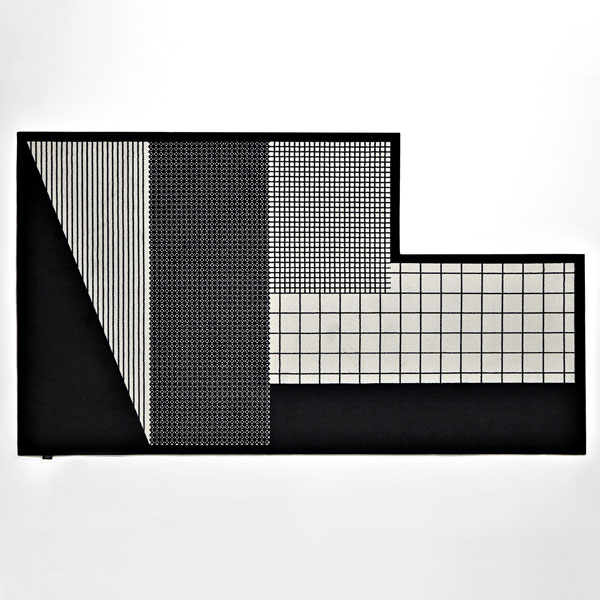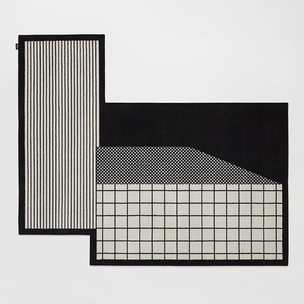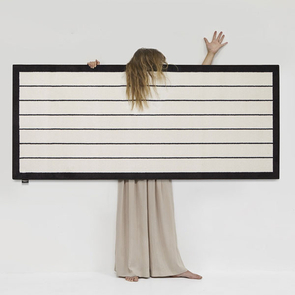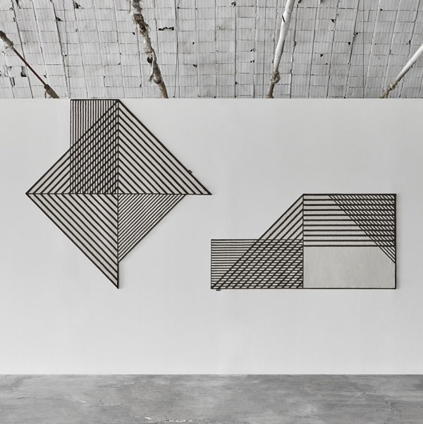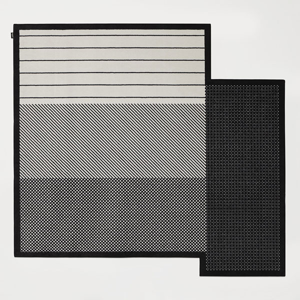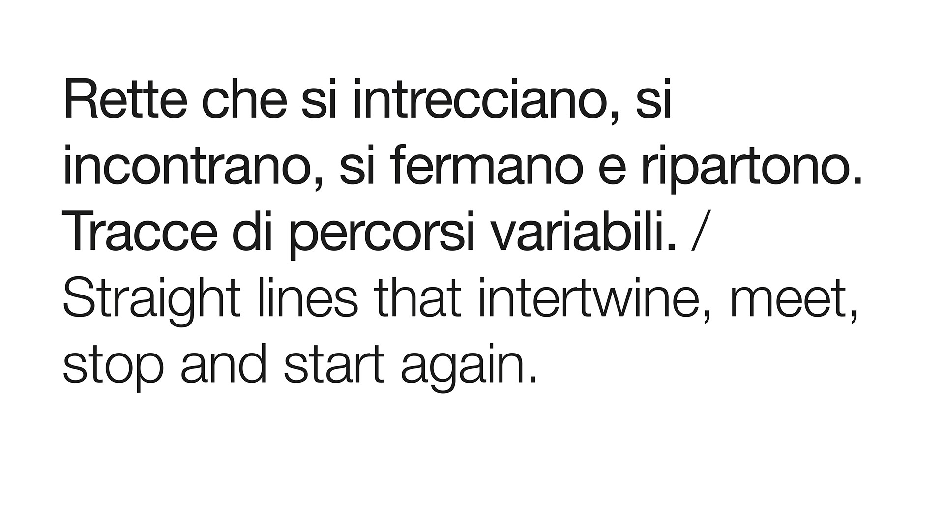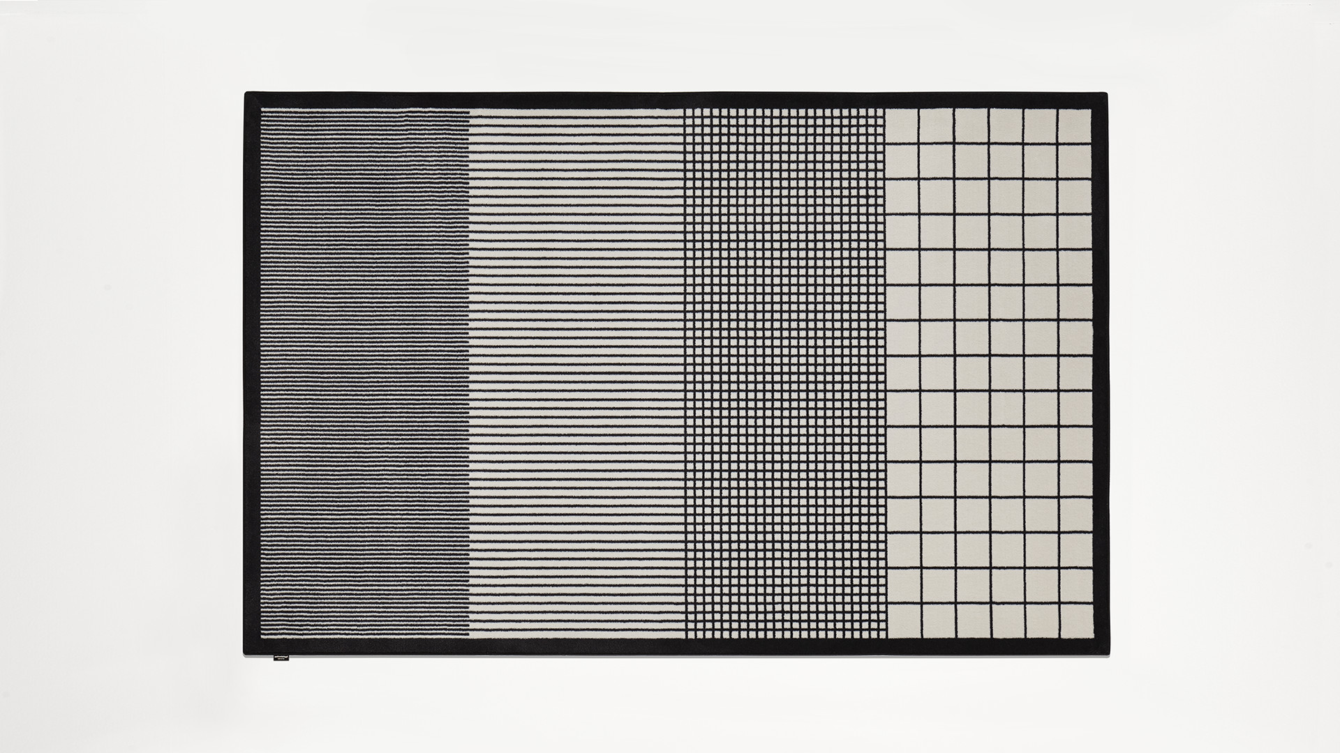 As in the wallpaper collection, TRALERIGHE, also in this collection all the carpet decorations are marked by horizontal, vertical and oblique lines that intersect as if they were alive in continuous motion. The contract between WHITE and BLACK creates light and transmits intensity. The white is not a pure white, but an almost muffled warm white which, combined with black, creates shades of different depths.