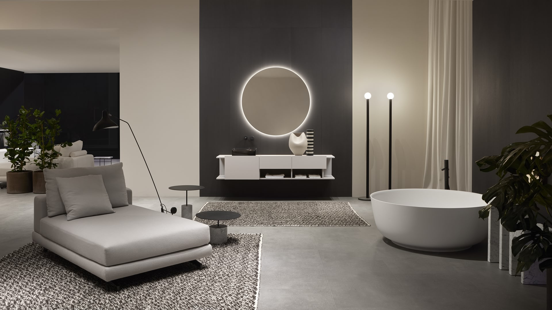 SMART_HPL is a material of the latest generation, born from antoniolupi's continuous research and the desire to use the best available technologies for its collections. Created from a set of cellulose fiber sheets, pre-impregnated with polymeric resins, pressed at high temperatures that thermo-harden and then seal the pores of the sheet. These processes make the surface not only pleasant to the touch, but also resistant to water and heat contact, scratch-resistant and fingerprint-repellent, while also being easy to clean.