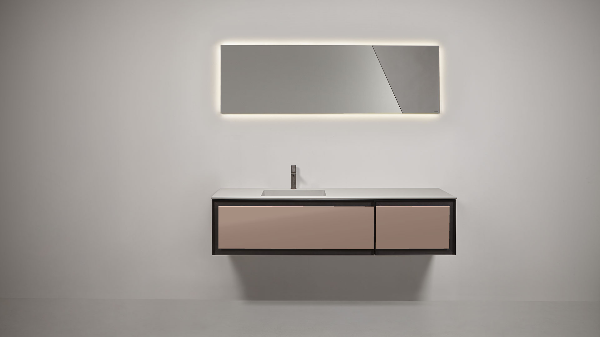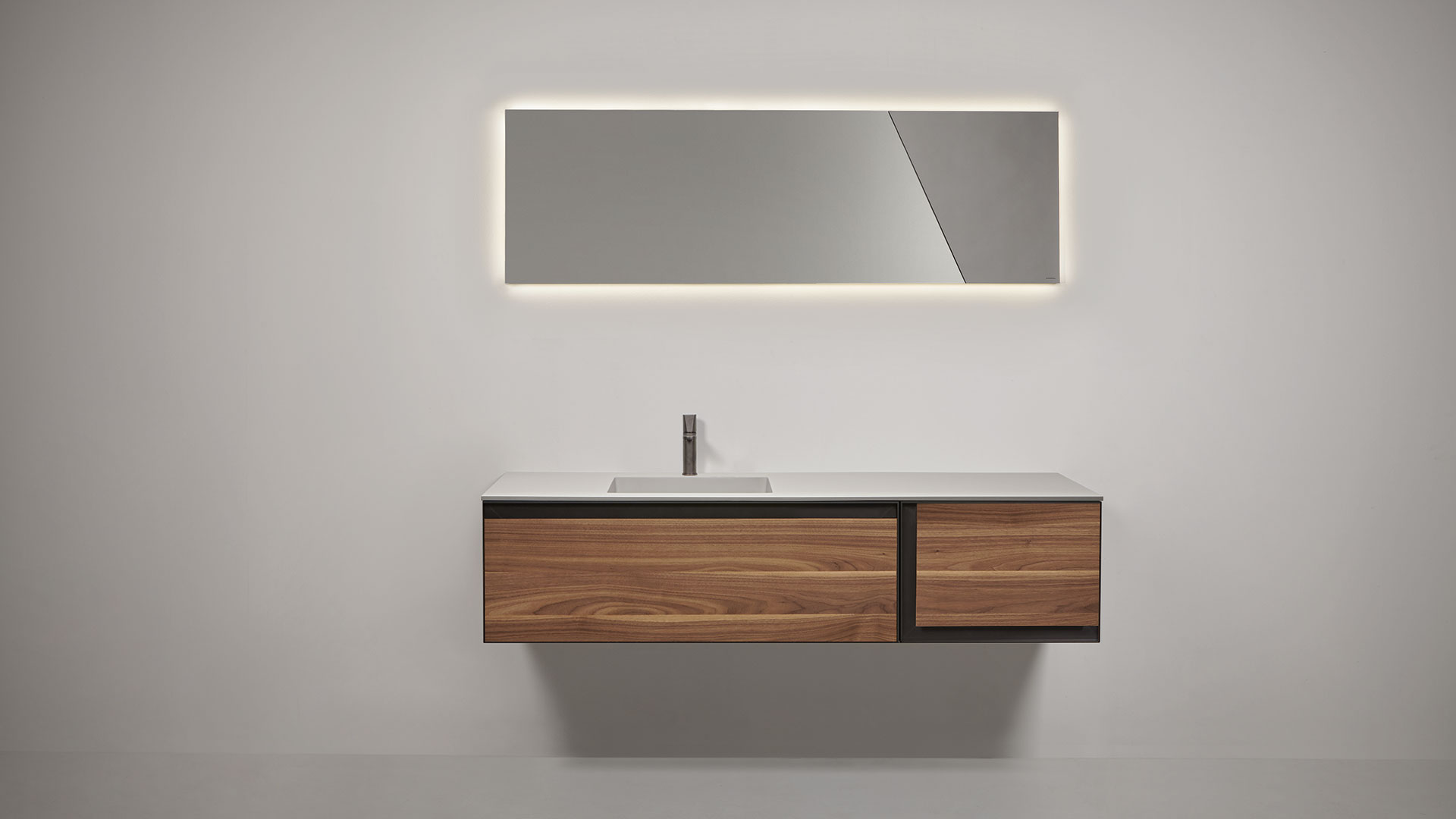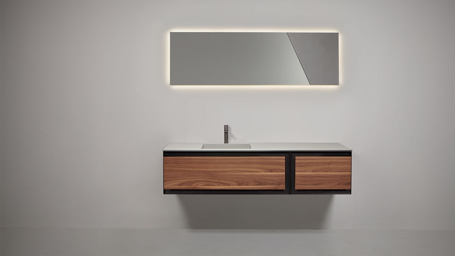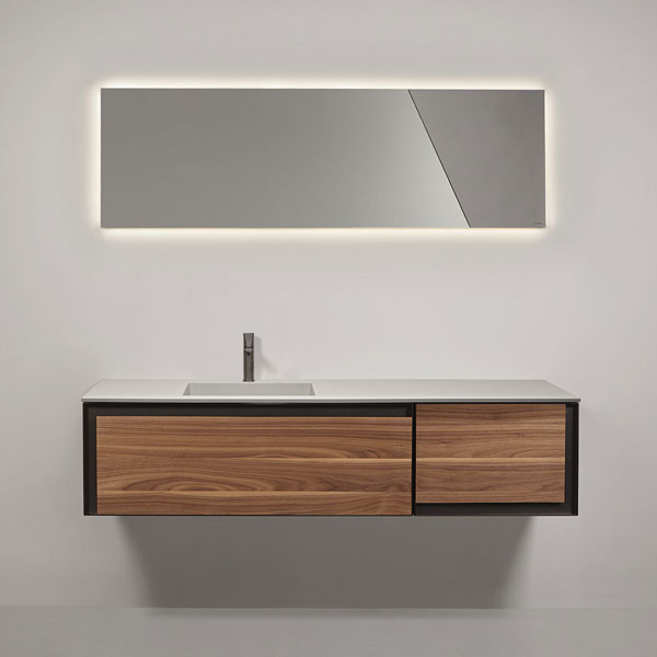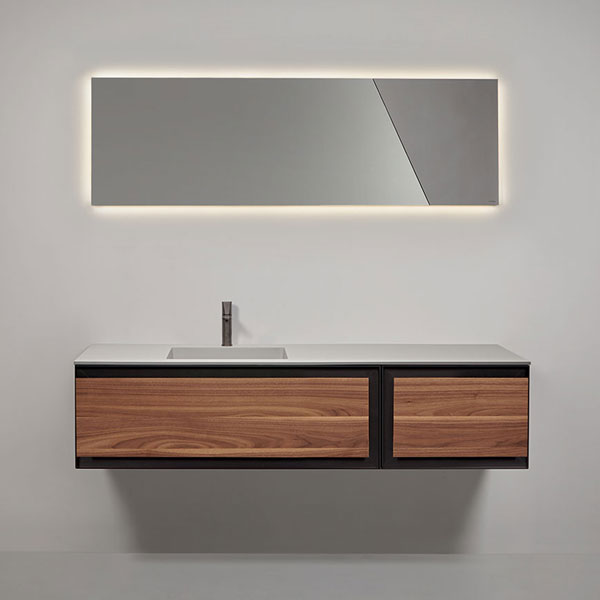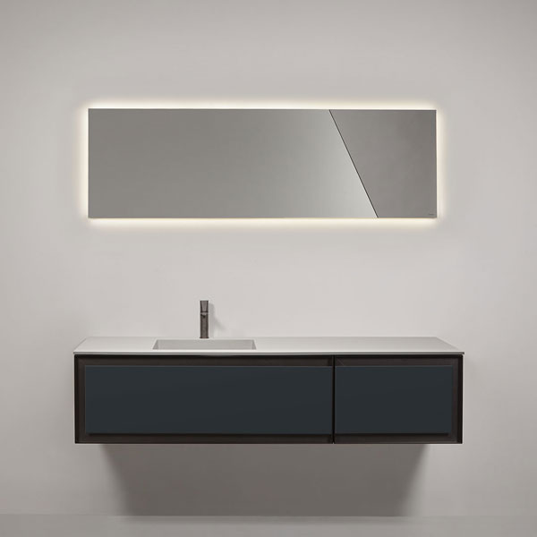 A wide and articulated program in its simplicity, a series of furniture with a clean and rigorous design that offers multiple possibilities of combinations thanks to the use of very few elements. Atelier, the series of furniture with essential lines designed by Mario Ferrarini, and with a decorative element in the door that enhances the composition. The door is composed of an aluminum profile with a wooden front which, depending on how it is positioned inside the profile, creates a groove or handle donating a graphic sign to the composition. Available in all wood types and in the full range of antoniolupi lacquered colors, Atelier is a tailored collection, inspired by the company's DNA, based on a combination of modules in various sizes.