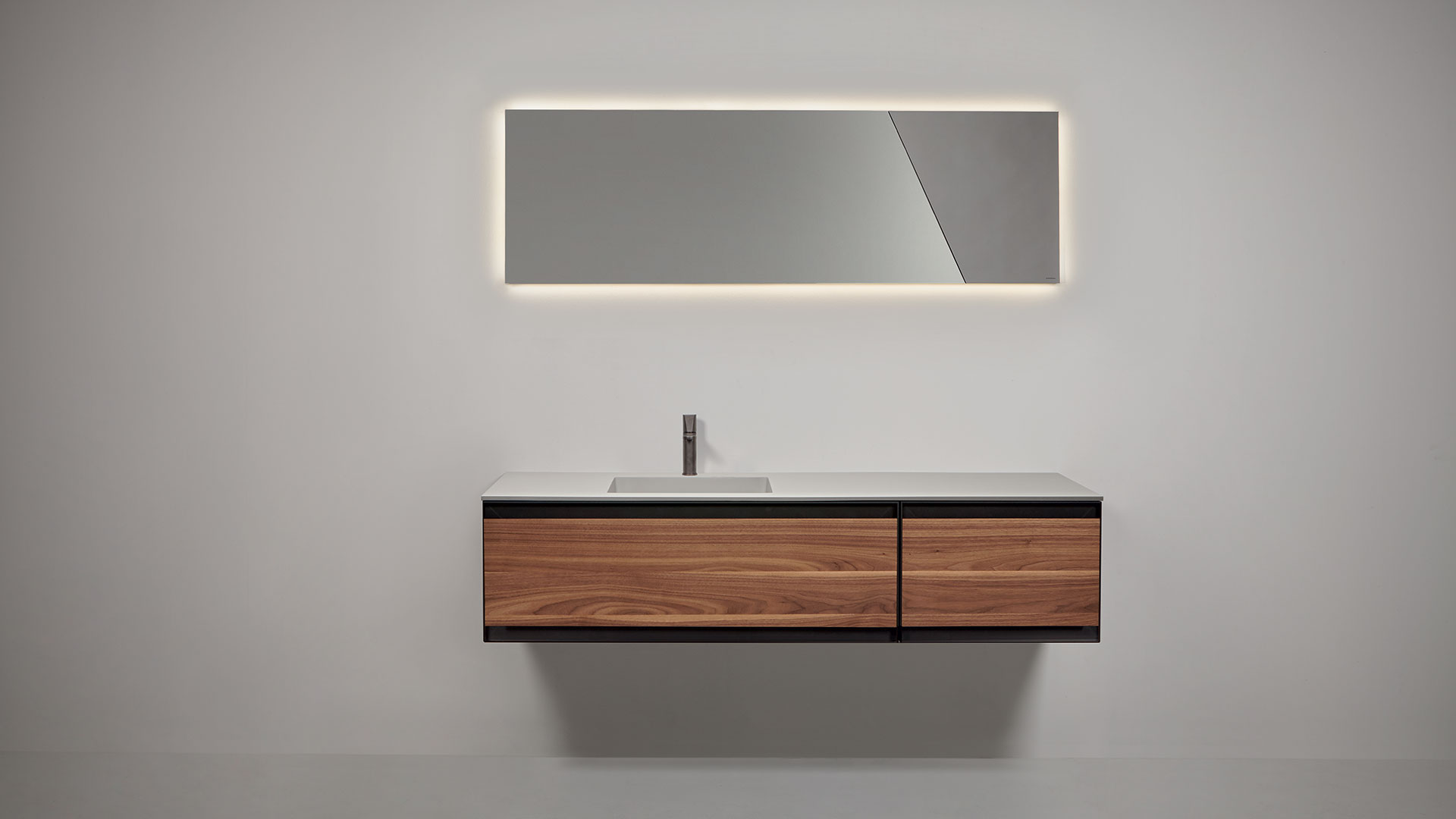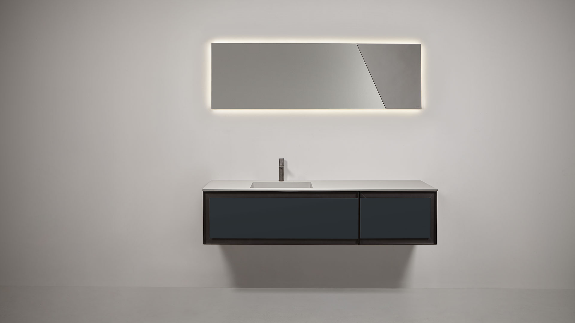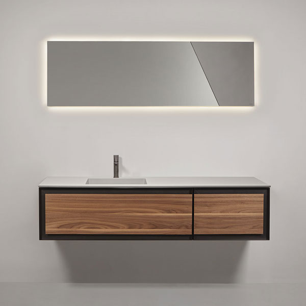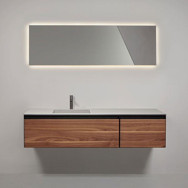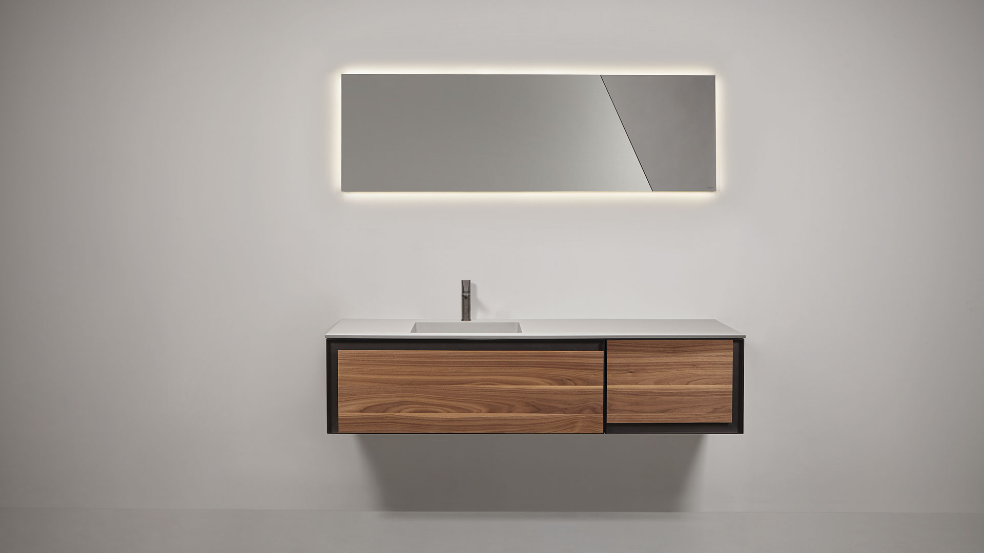 A wide and articulated program in its simplicity, a series of furniture with a clean and rigorous design that offers multiple possibilities of combinations thanks to the use of very few elements. Atelier, the series of furniture with essential lines designed by Mario Ferrarini, and with a decorative element in the door that enhances the composition. The door is composed of an aluminum profile with a wooden front which, depending on how it is positioned inside the profile, creates a groove or handle donating a graphic sign to the composition. Available in all wood types and in the full range of antoniolupi lacquered colors, Atelier is a tailored collection, inspired by the company's DNA, based on a combination of modules in various sizes.