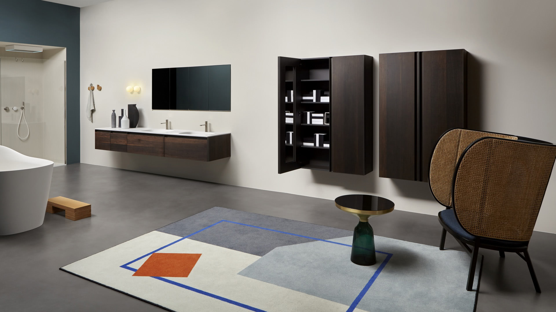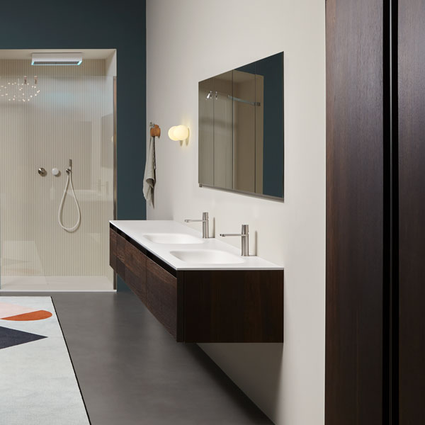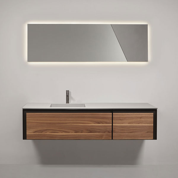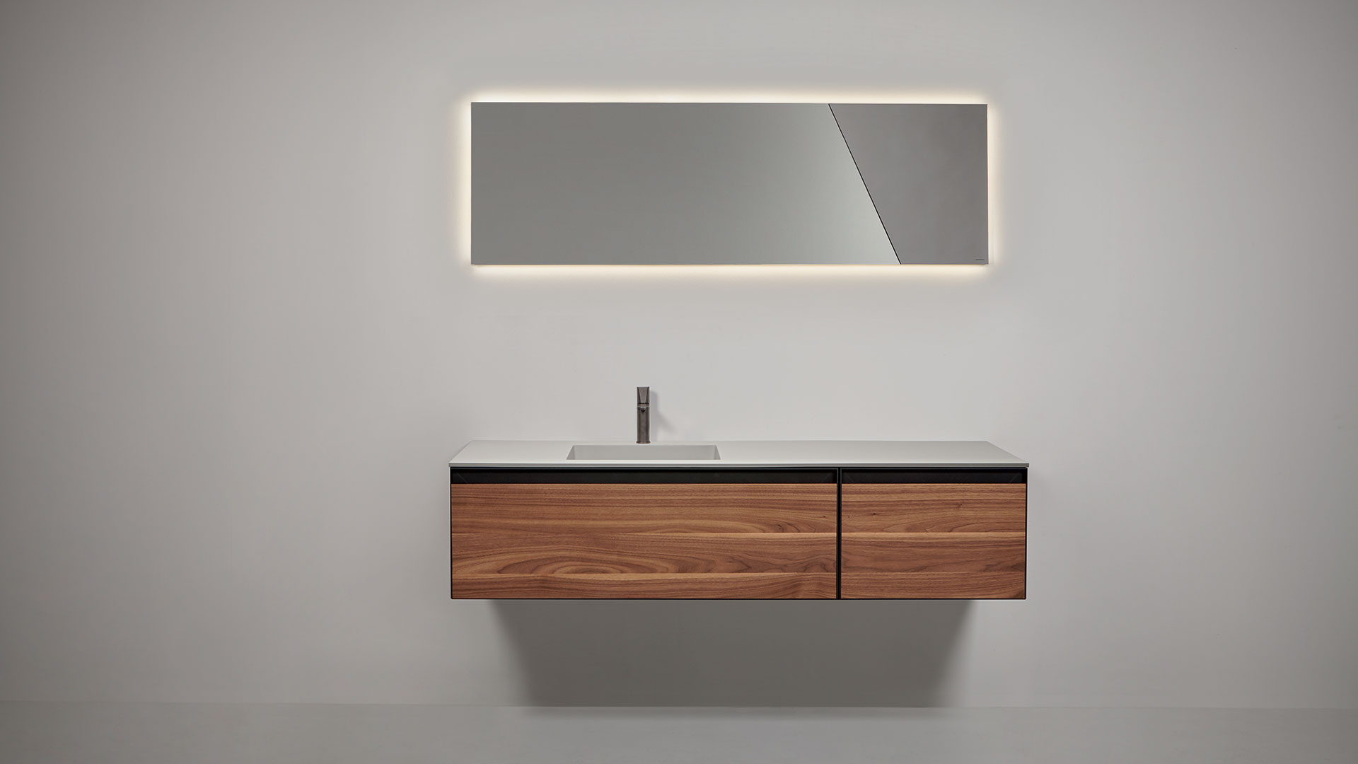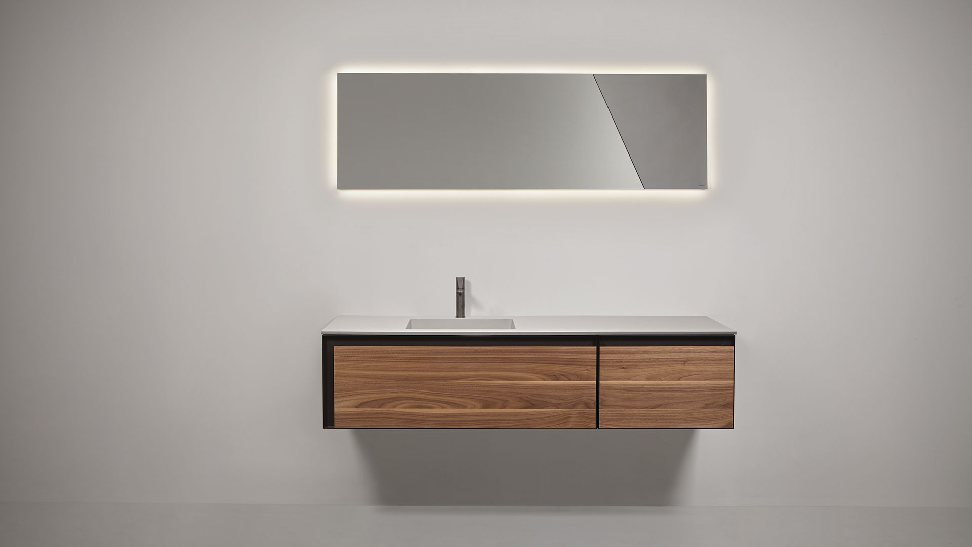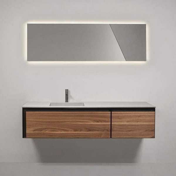 A wide and articulated program in its simplicity, a series of furniture with a clean and rigorous design that offers multiple possibilities of combinations thanks to the use of very few elements. Atelier, the series of furniture with essential lines designed by Mario Ferrarini, and with a decorative element in the door that enhances the composition. The door is composed of an aluminum profile with a wooden front which, depending on how it is positioned inside the profile, creates a groove or handle donating a graphic sign to the composition. Available in all wood types and in the full range of antoniolupi lacquered colors, Atelier is a tailored collection, inspired by the company's DNA, based on a combination of modules in various sizes.