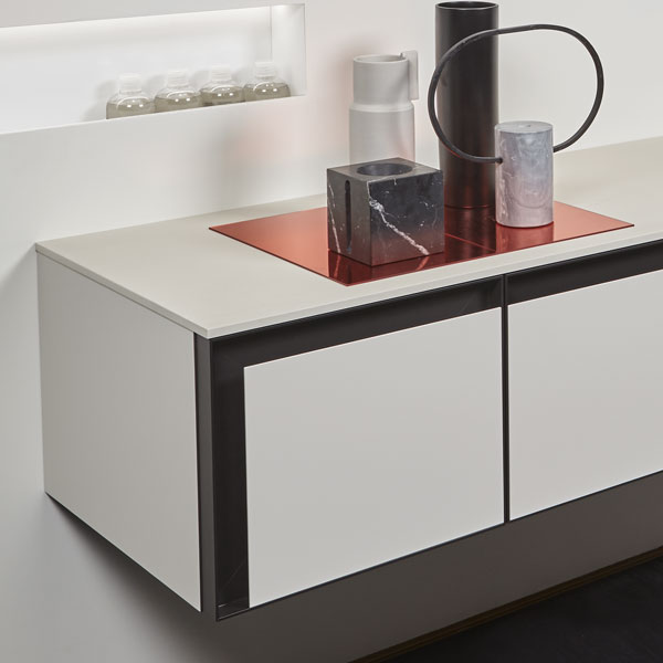 The handle can be placed horizontally, totally or partially, with respect to the rest of the furniture, but also placed along the vertical sides or even "frame" the four sides allowing you to customize a domestic micro-architecture and giving depth to the surface.