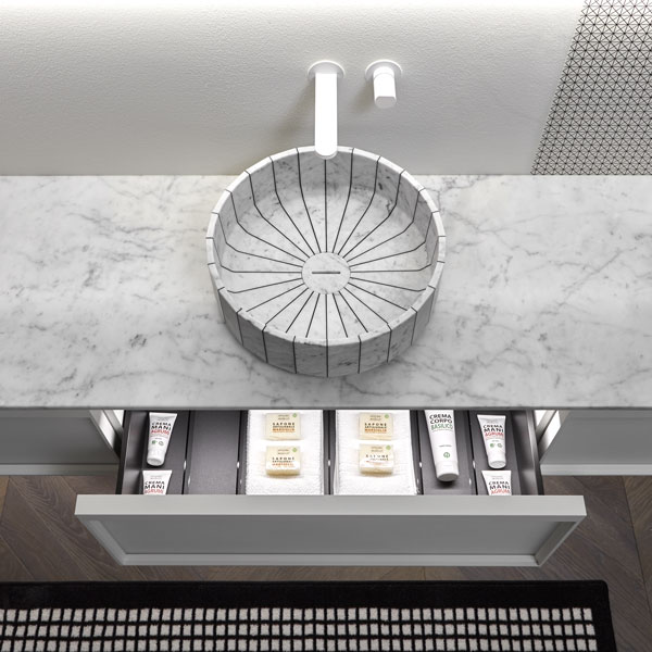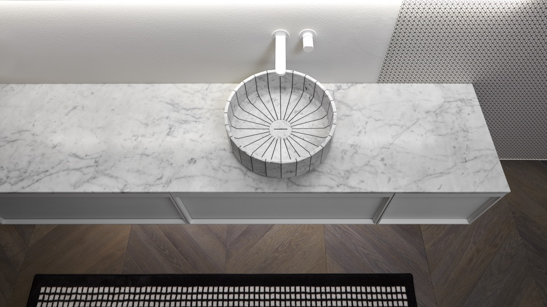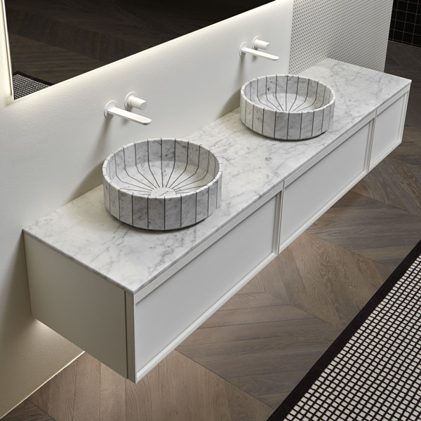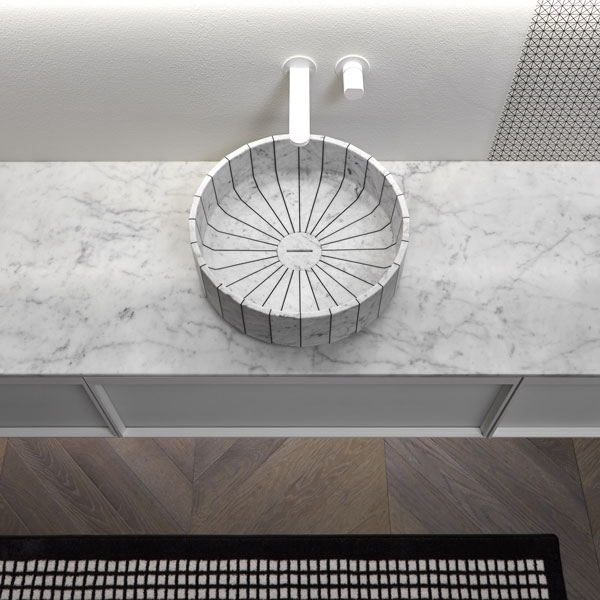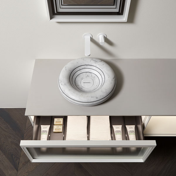 Sinks art. Gessati in Carrara marble, Indigo tap series matt white.