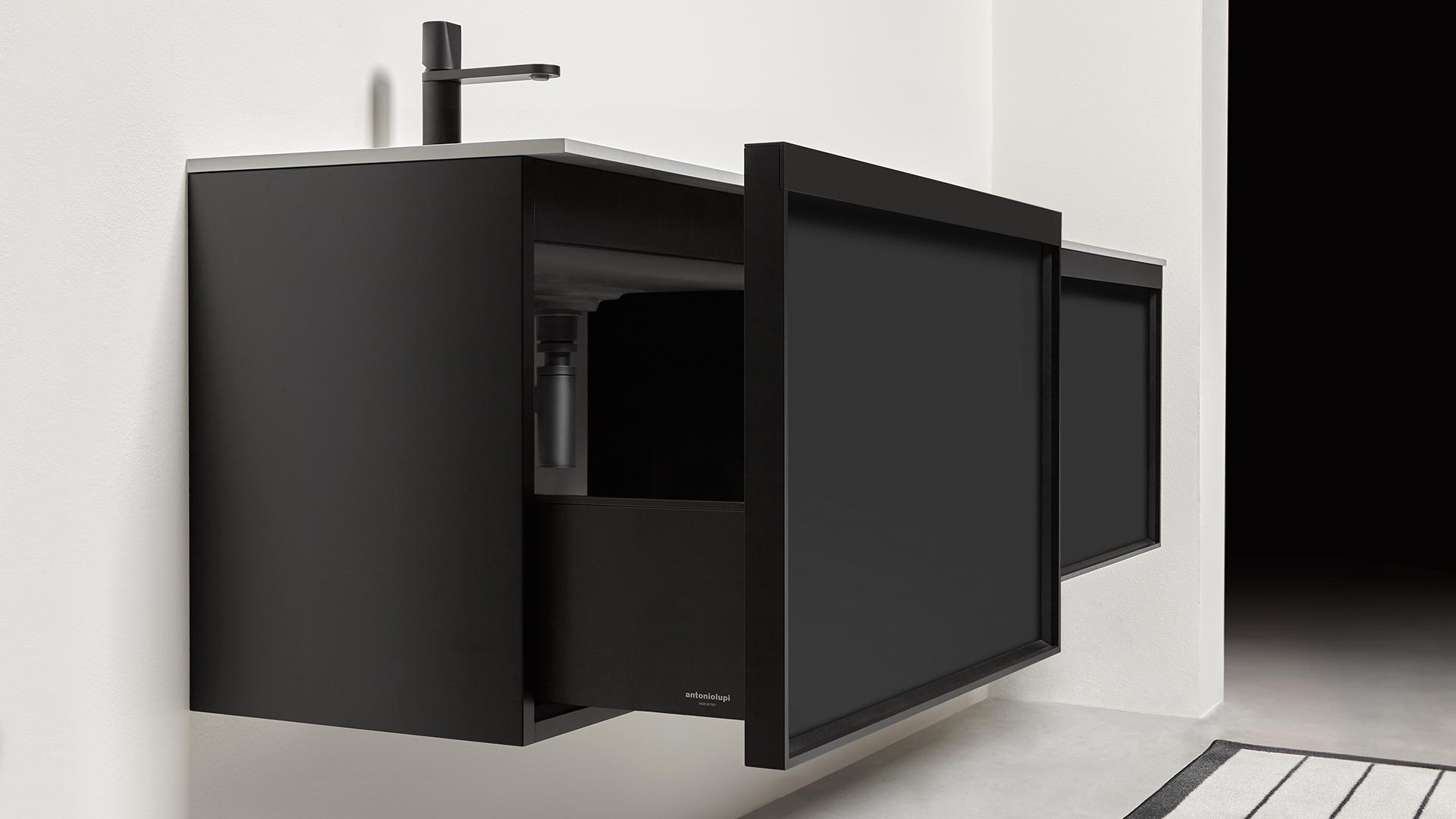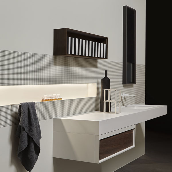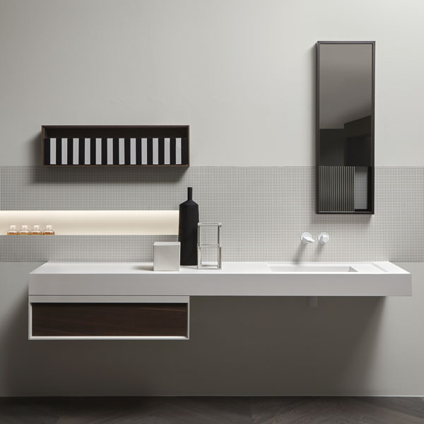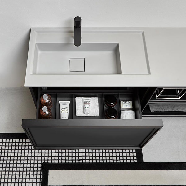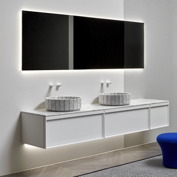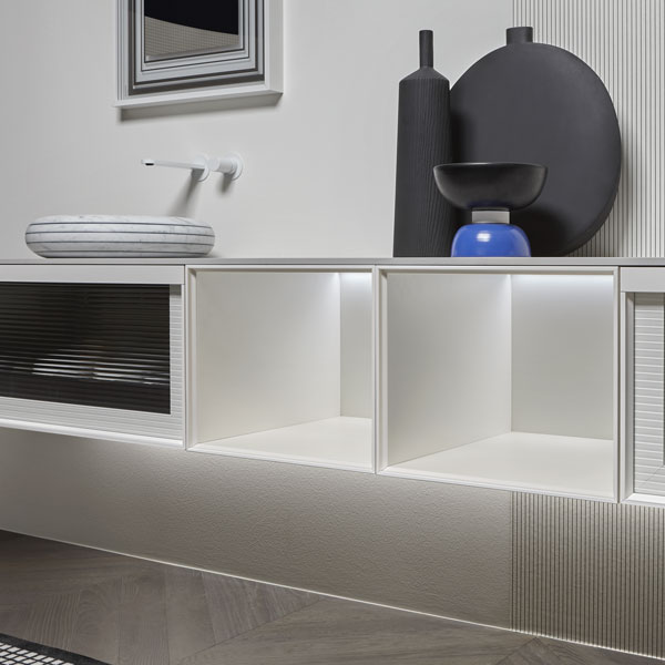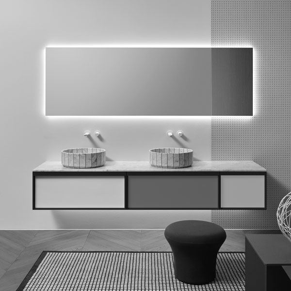 The Bemade collection is the coherent evolution of Bespoke, one of antoniolupi's bestsellers, from which it inherits the purity of form and compositional flexibility while respecting a rigorous and essential sign. The evolution lies precisely in the concept of the frame but also in the possibility of offering even greater possibilities for customizing the volumes to give identity to the space, to dialogue with the architectural elements that characterize the bathroom environment and not only.
