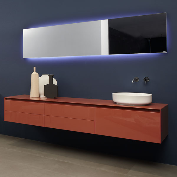 The unique quality of workmanship coupled with the ability to choose sizes, colors and finishes make Panta Rei a tailored collection characterized by excellence. The furniture, available in a lacquered or wood finish communicate with the washbasins of the collection.