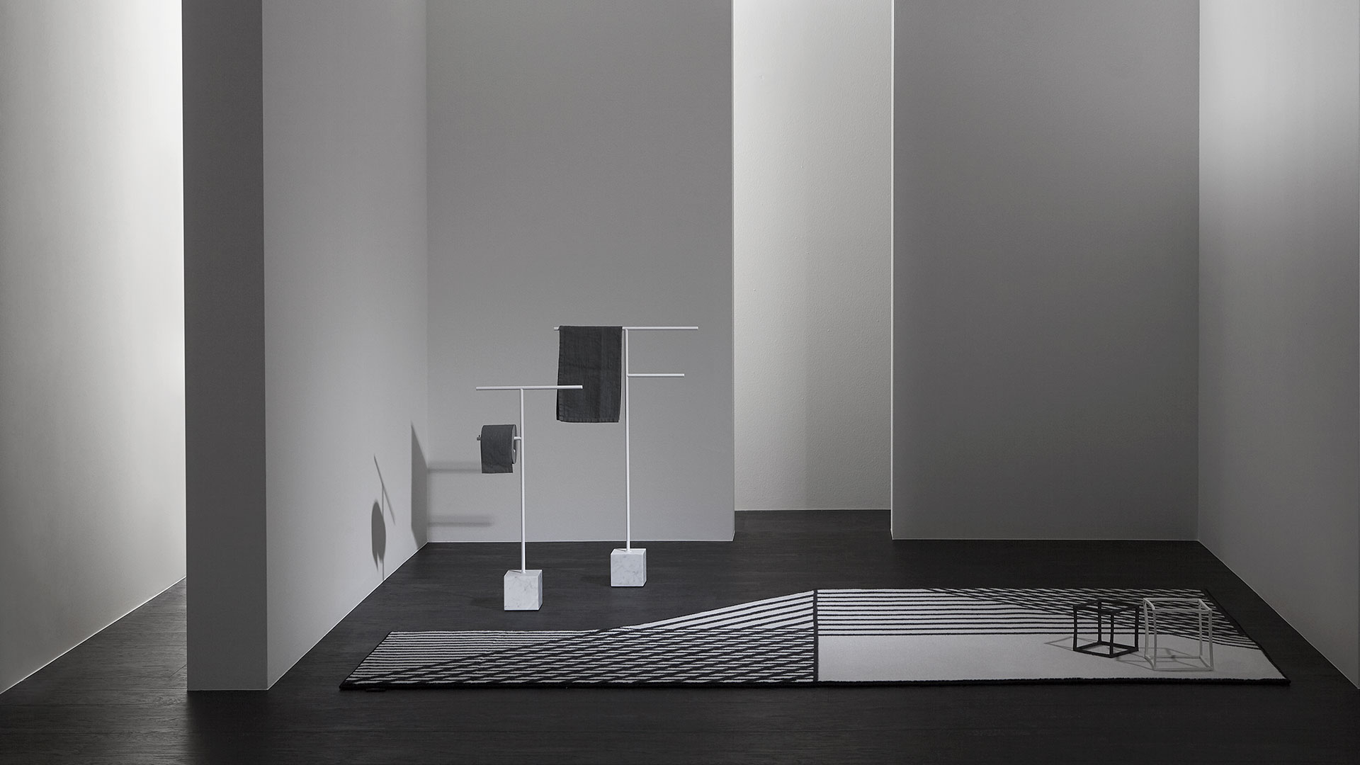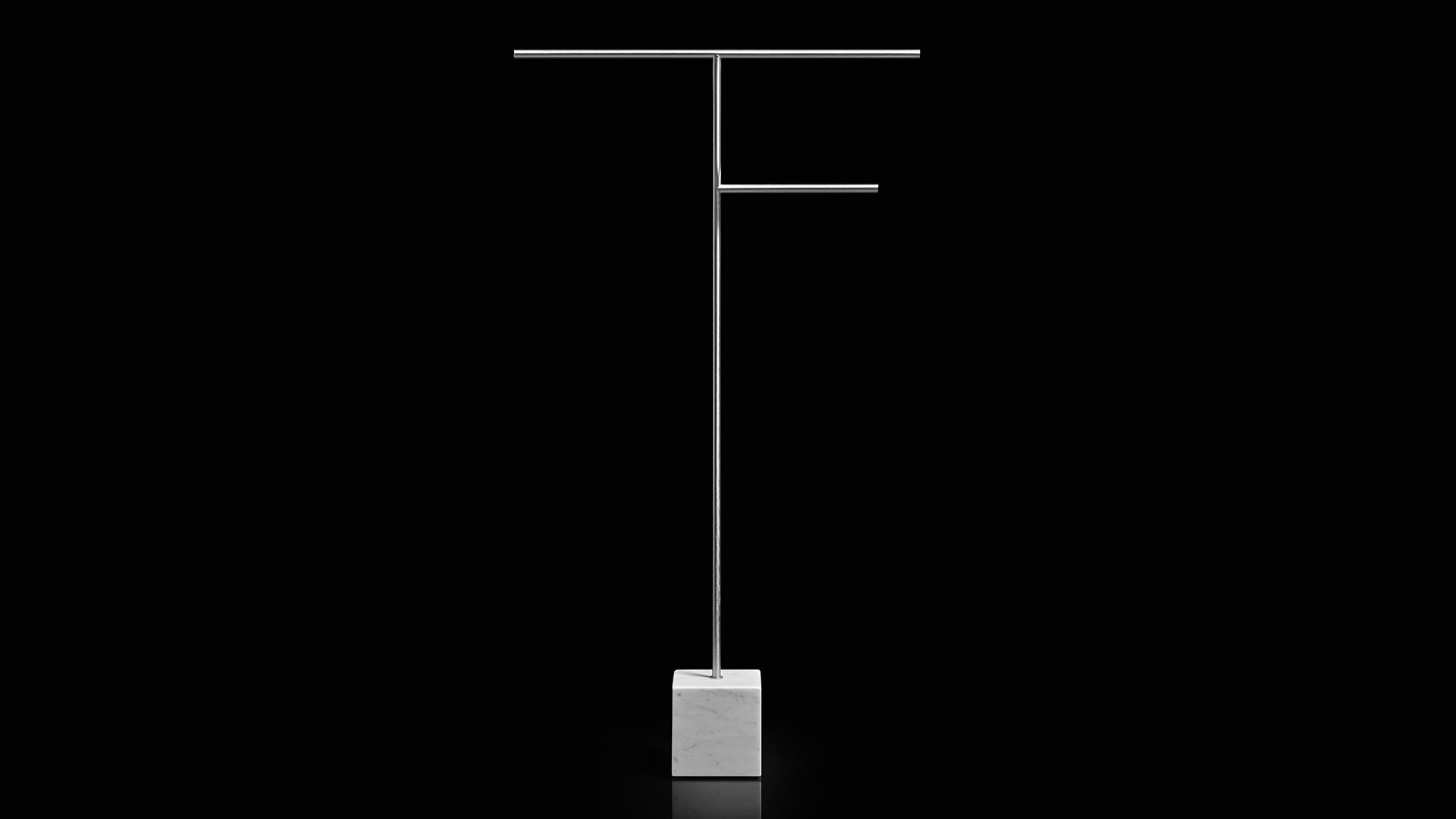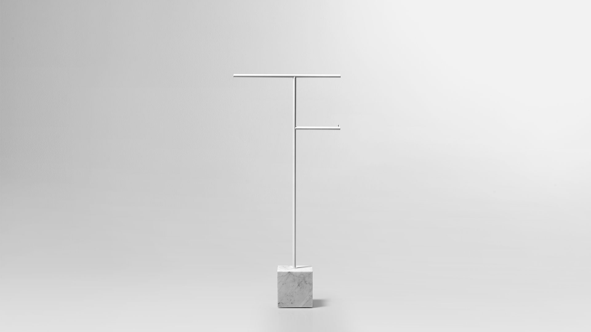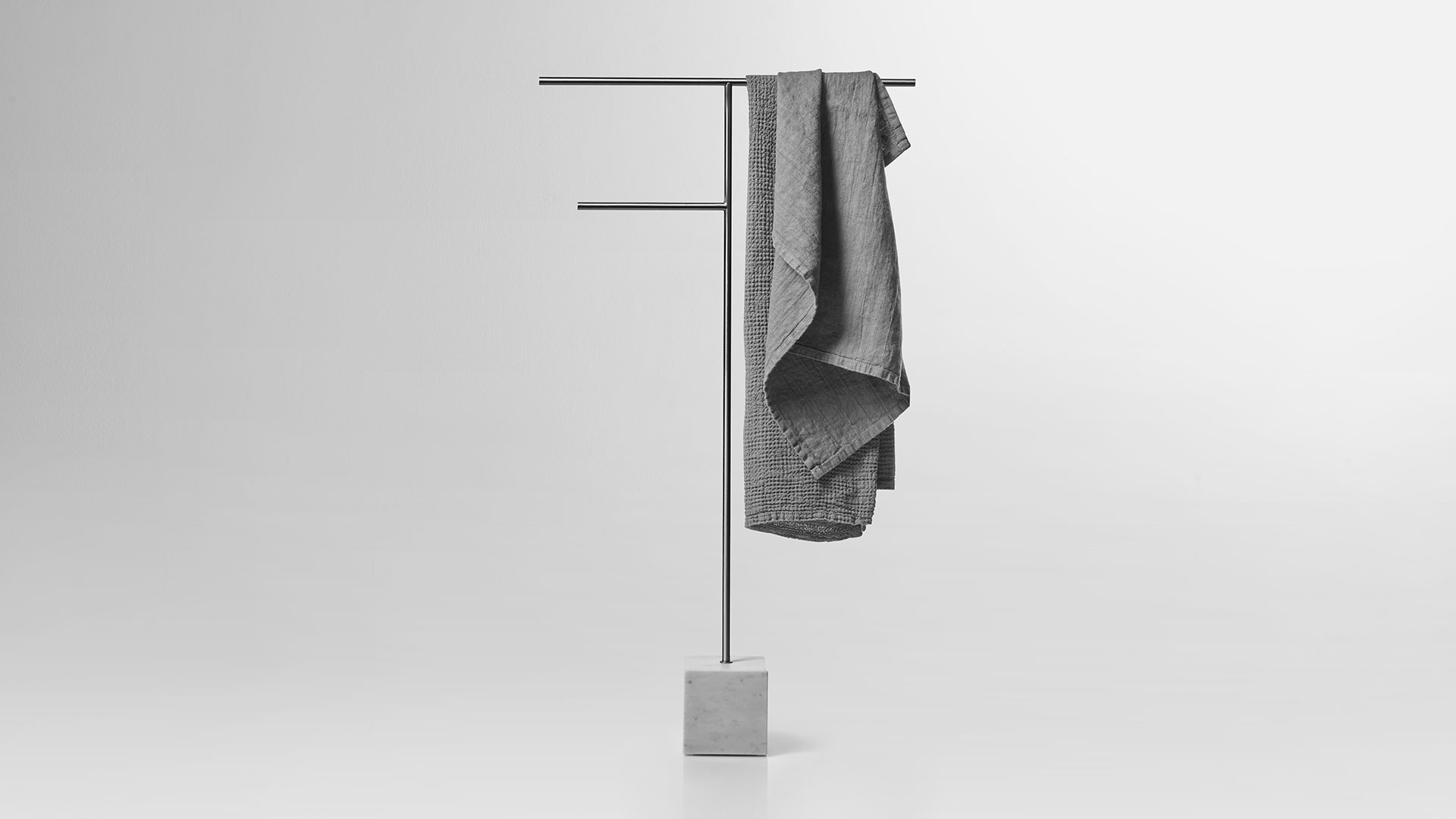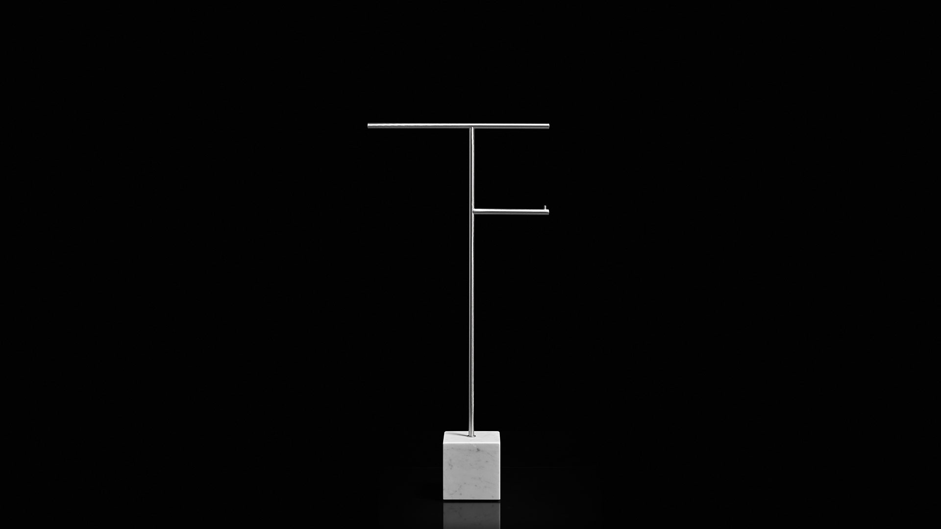 A rigorous graphic sign that develops within the space and becomes three-dimensional, a purity of orthogonal lines that describes an elegant and refined accessory, capable of fitting into the bathroom with discretion and style. Bivio is a collection of freestanding accessories with an essential and clean image, which arises from the encounter between solidity and lightness, between gravity and the ability to hover in space. A project that has its distinctive feature in the proportional balance, in the perfect definition of diameters and dimensions.