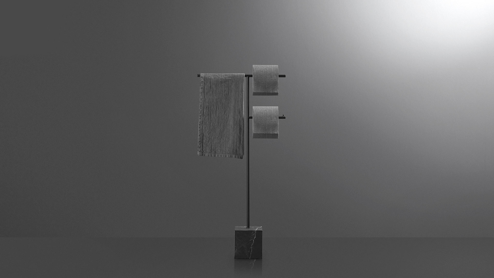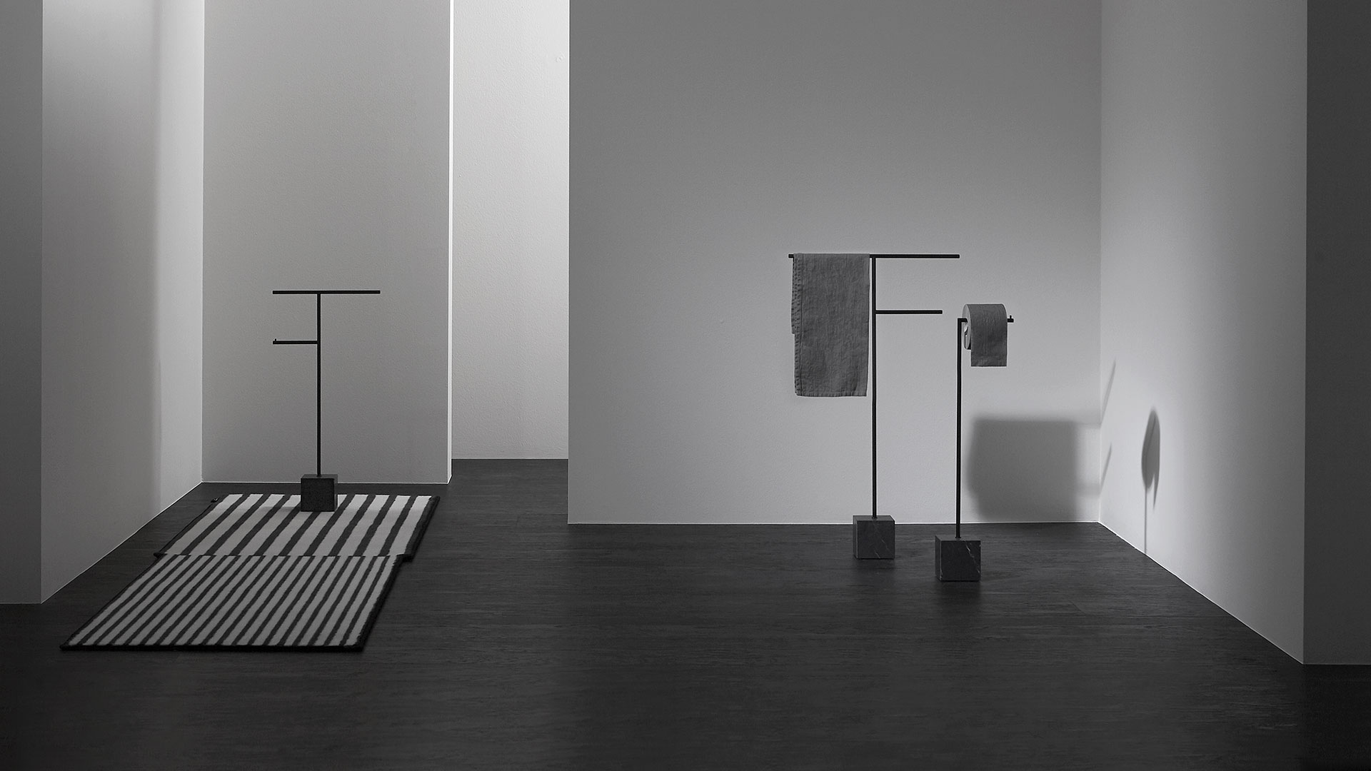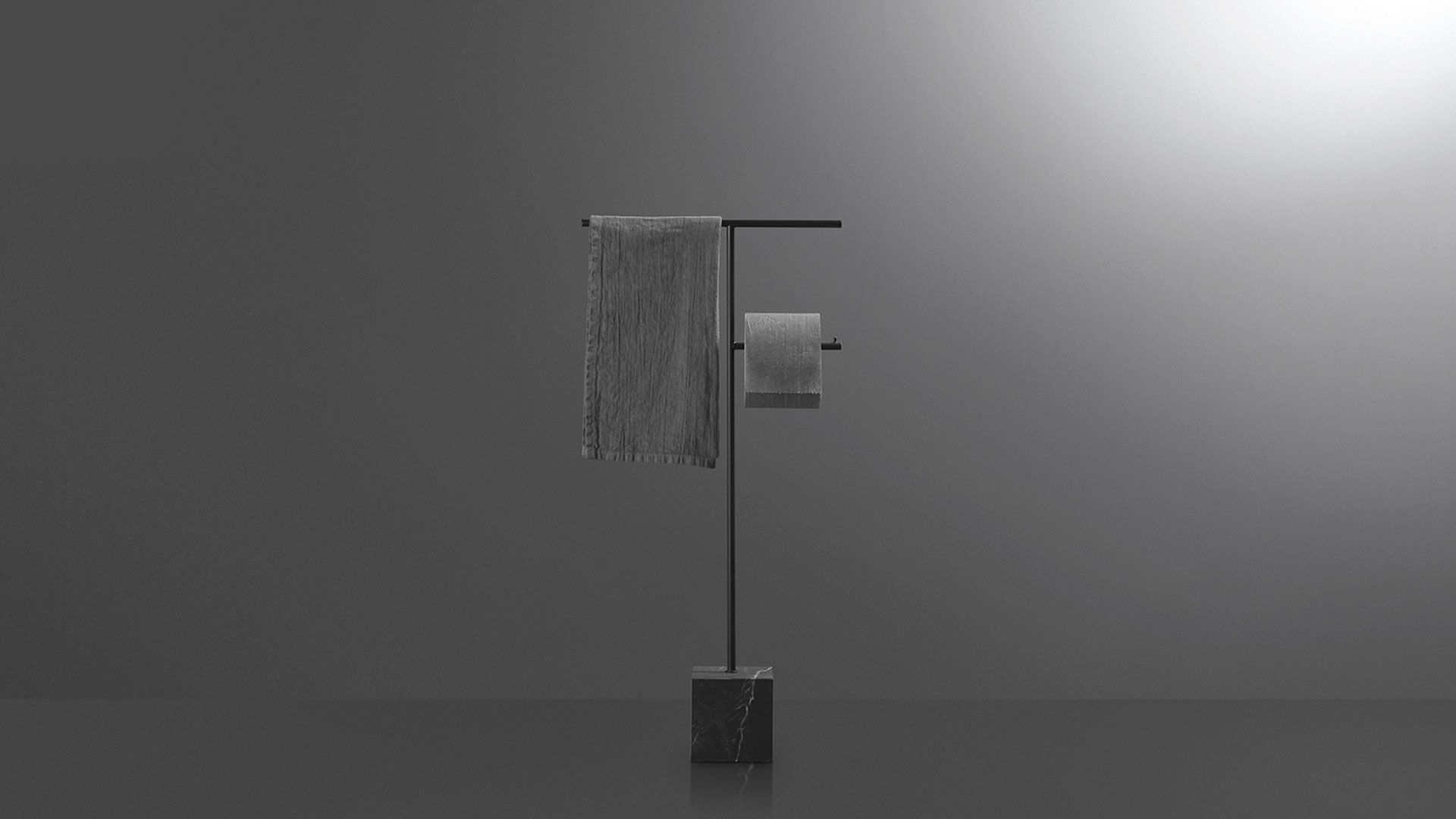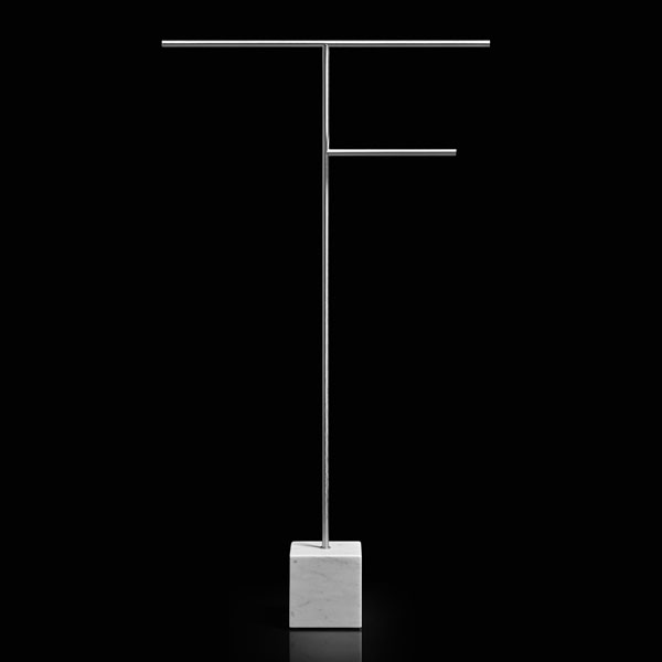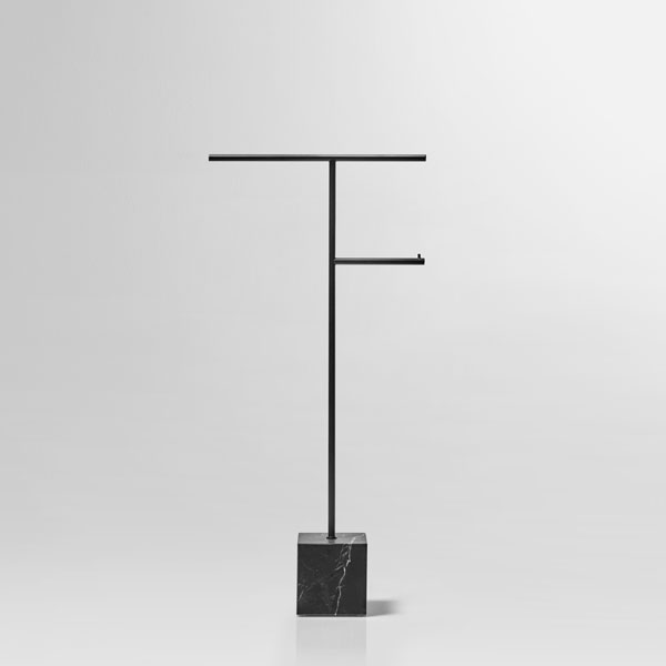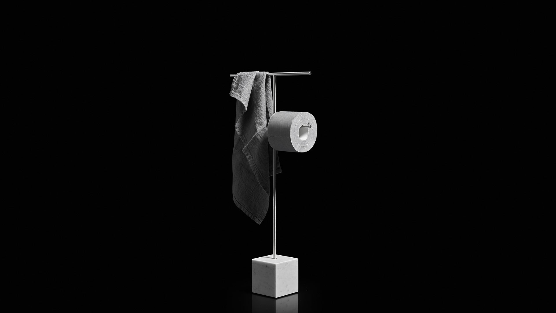 The freestanding accessories Bivio bring material and design excellence in the bathroom accessories, as it is in antoniolupi's mission. The cubic base in Carrara Marble or Nero Marquinia refers to the precious heritage of the earth, the metal structure in brass, available in satin steel, polished chrome, matt white or embossed colors, rises to branch out and house towels or paper rolls. Solid but at the same time ethereal, the accessories best describe the company's design approach and the obsessive attention to every detail that becomes a distinctive feature of a style, even through apparently simpler projects.