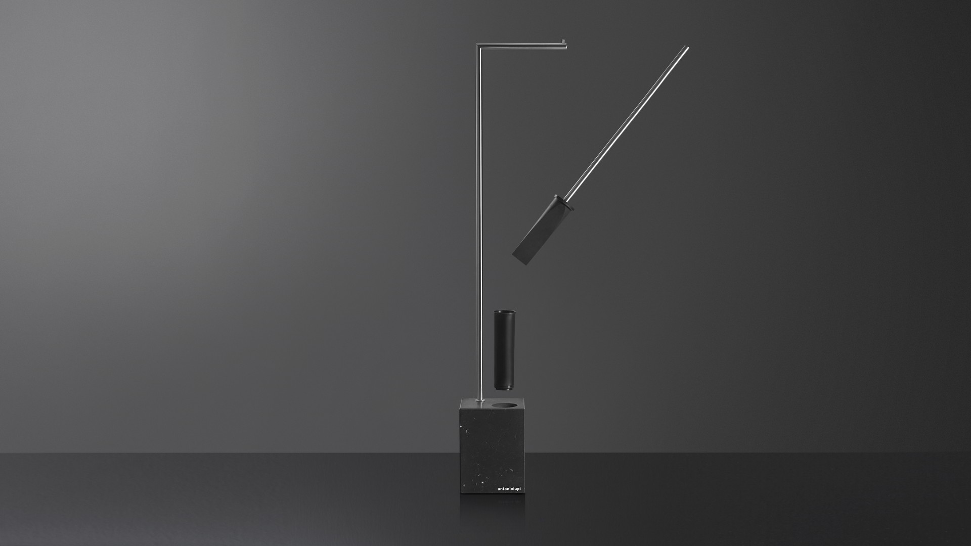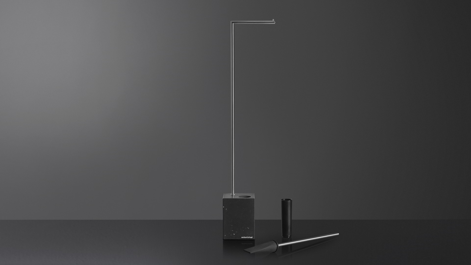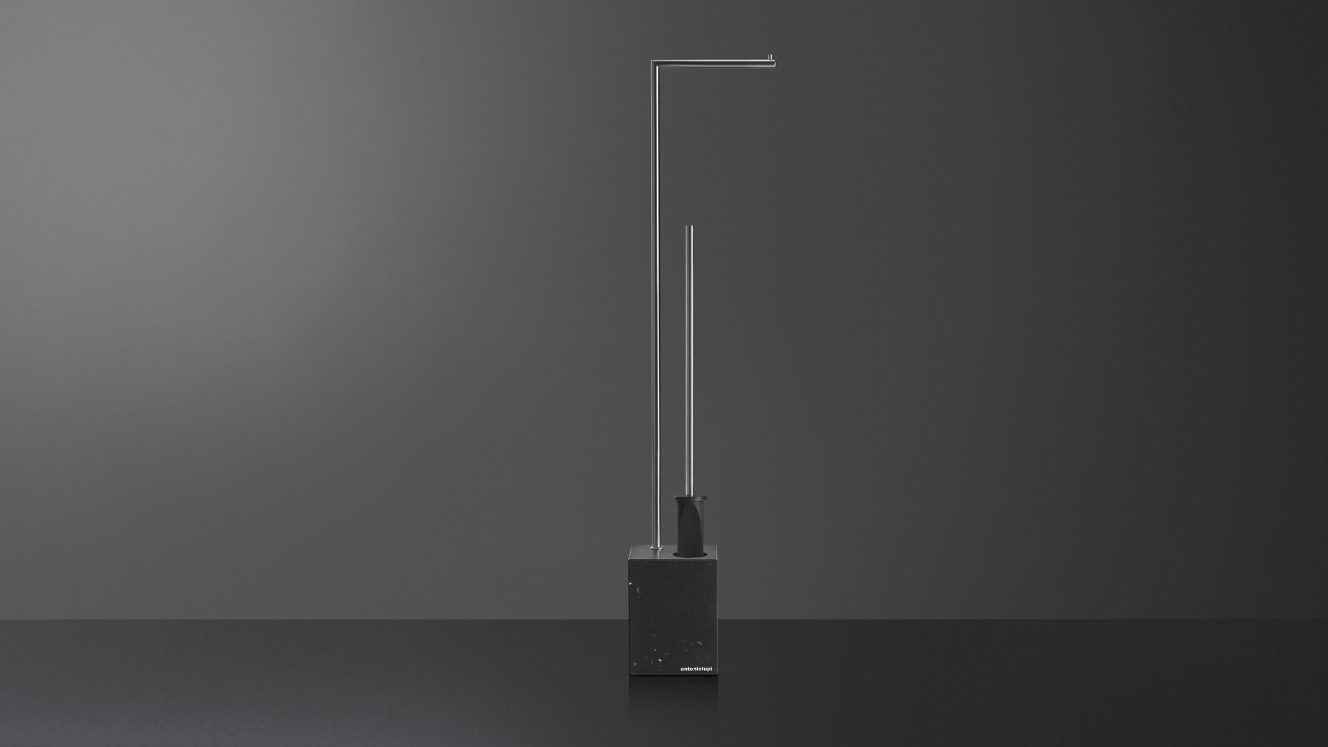 The Bivio collection has a graphic and rigorous sign, completed with the insertion of the black silicone spatula brush holder, ensuring perfect hygiene as well as giving the object an innovative concept. The cubic base in Carrara Marble or Nero Marquinia, refers to the precious heritage of the earth, the metal structure is in brass with a satin steel finish, available in various colors upon request.