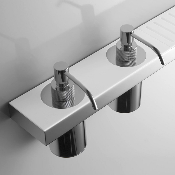 A full set of accessories that combines minimalist design and pure geometry to a perfect combination of materials and surfaces that embellish each other. The Play collection includes dispensers, shelves, toilet brush holders, soap holders and towel racks all coordinated by a formal contemporary and informal language.