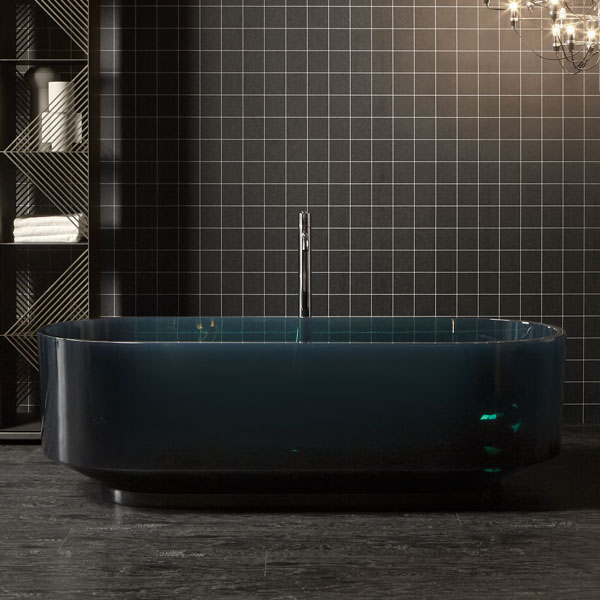 Essential shape, a welcoming volume and iconic in its essence. The freestanding Borghi bath is made of Cristalmood, Icemood, marble or stone. The marked chromatic personality and the typical reflections make it an absolute protagonist of the space, a remarkable element around which to build the bathroom environment. The volume is pure, capacious, ergonomic, lightened by a narrow base.