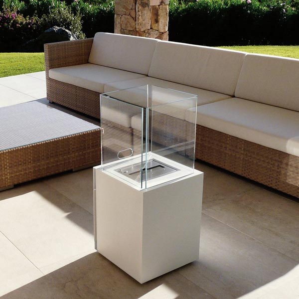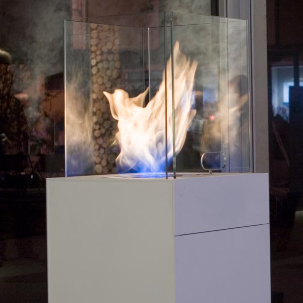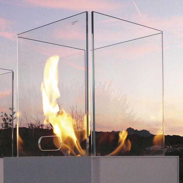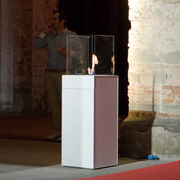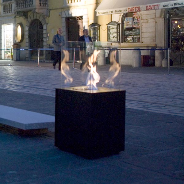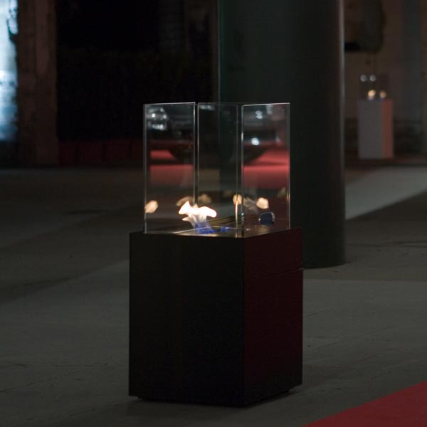 Babele is composed by two volumes one on top of the other. The project is a perfect minimalistic parallelepiped made of steel over which four transparent glass sheets are positioned. The glass sheets, forming a perimeter, contain an amazing dance of fire created by the burner. Babele is an ethanol fireplace for indoors or outdoors. Babele contributes to create an atmosphere of great impact in different contexts such as bathroom, living room, terraces, garden and also temporary installations.