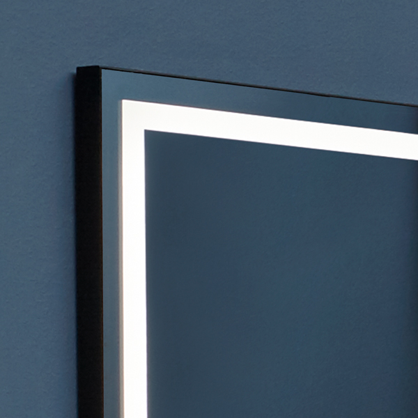Polished edge mirror 4 mm thick with white led lighting, complete with matt black frame.