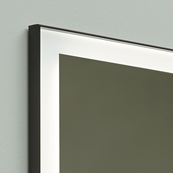 Polished edge mirror 4 mm thick with white led lighting complete with matt black frame.