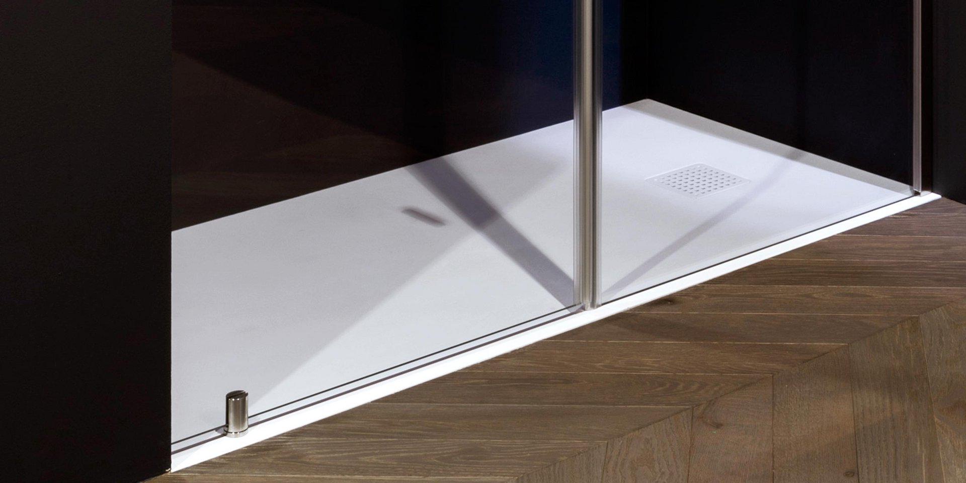 Thin as a sheet of paper, slightly inclined towards the drain perfect for integrating into the floor and delimiting an area of relaxation and well being with its clean and essential lines.