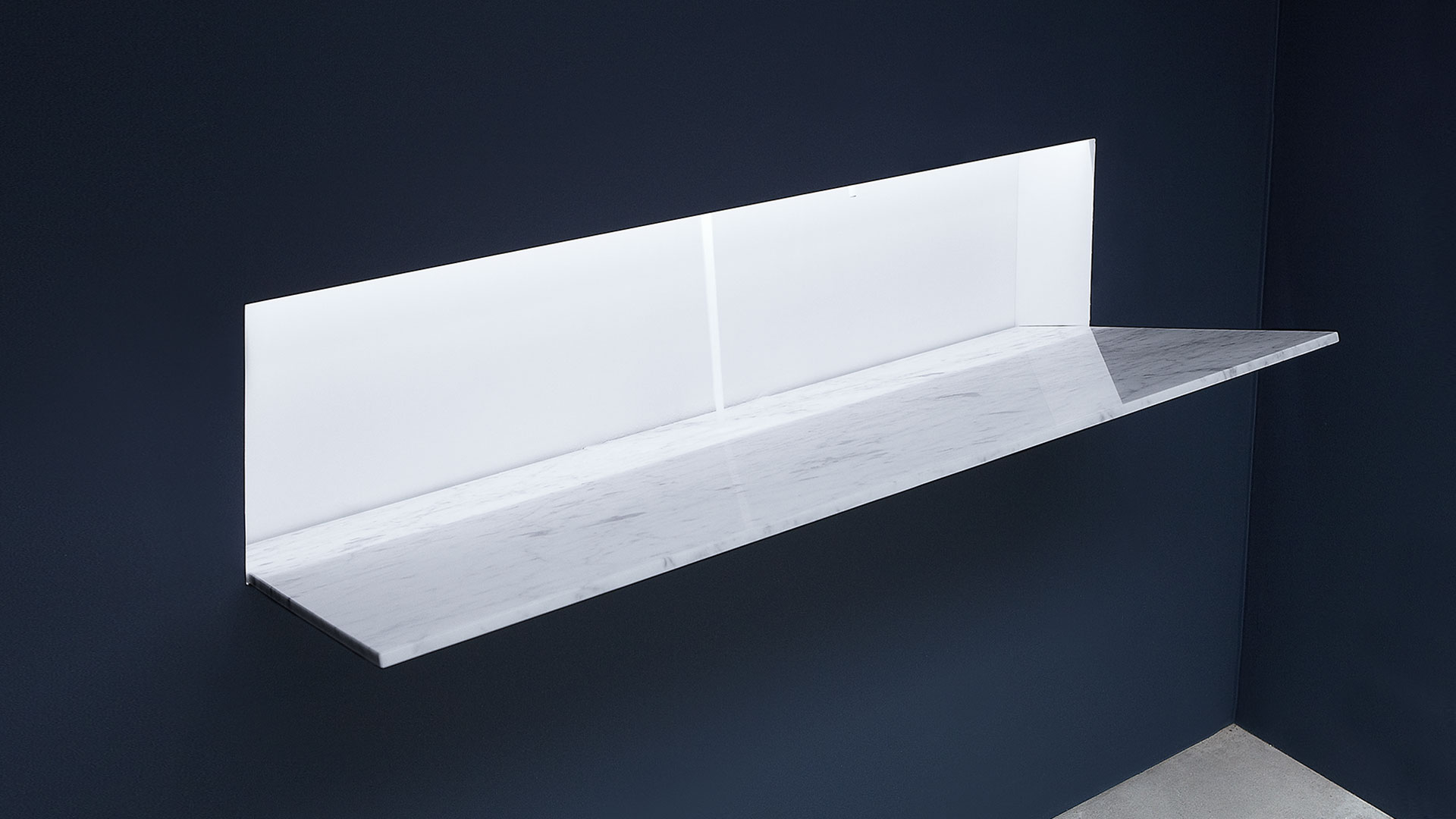 A reduced aesthetic essence. Battigia® is a new sink in Moodlight that follows a path taken on by antoniolupi of hidden sinks. In fact it is a sink completely encased in the wall.