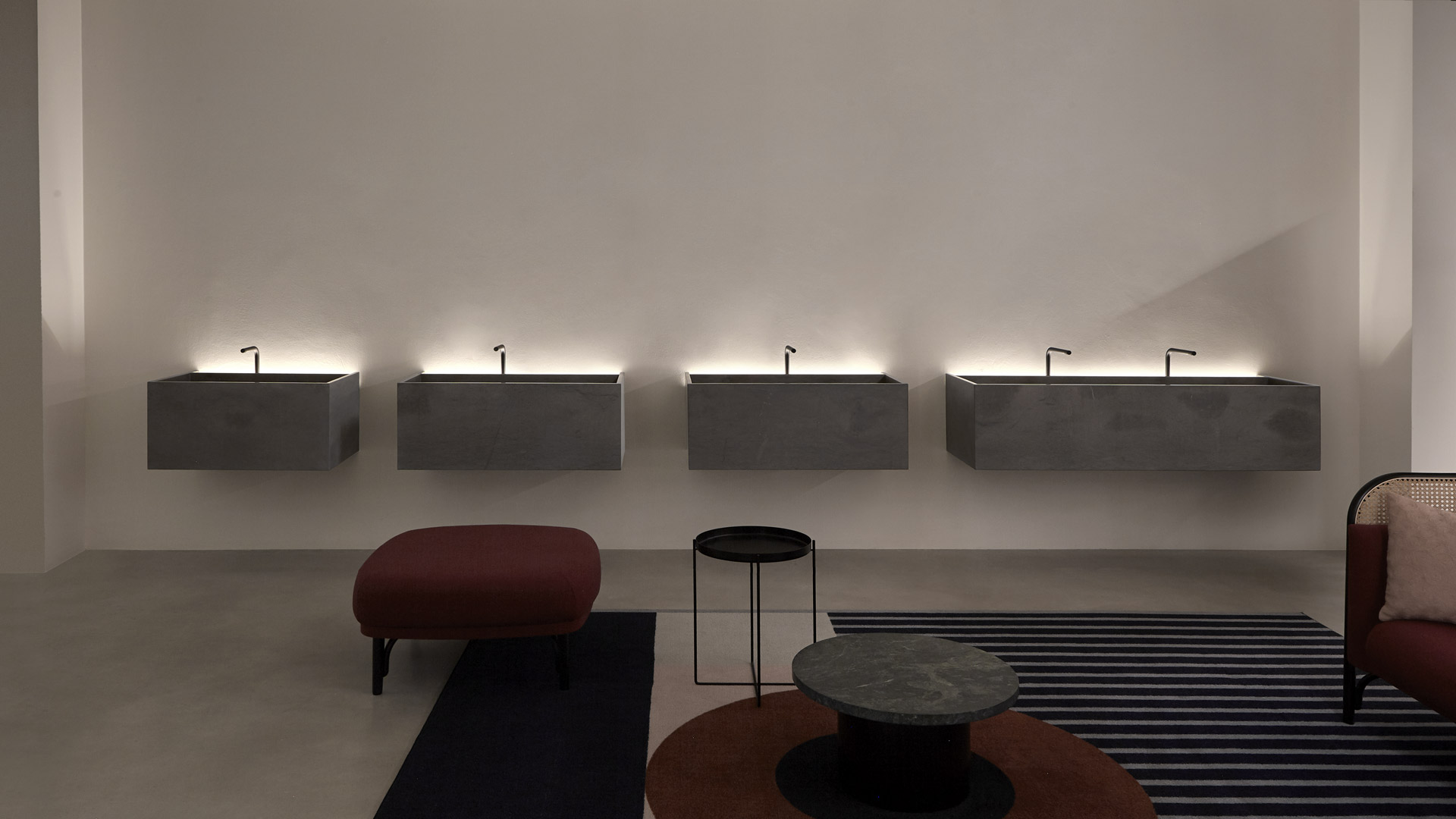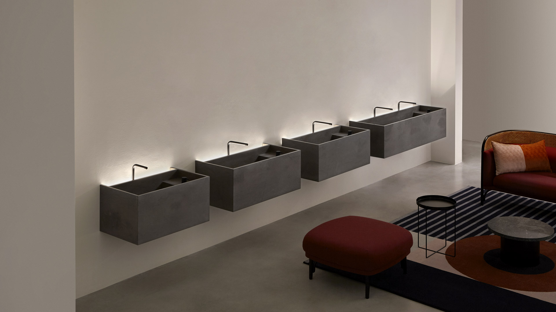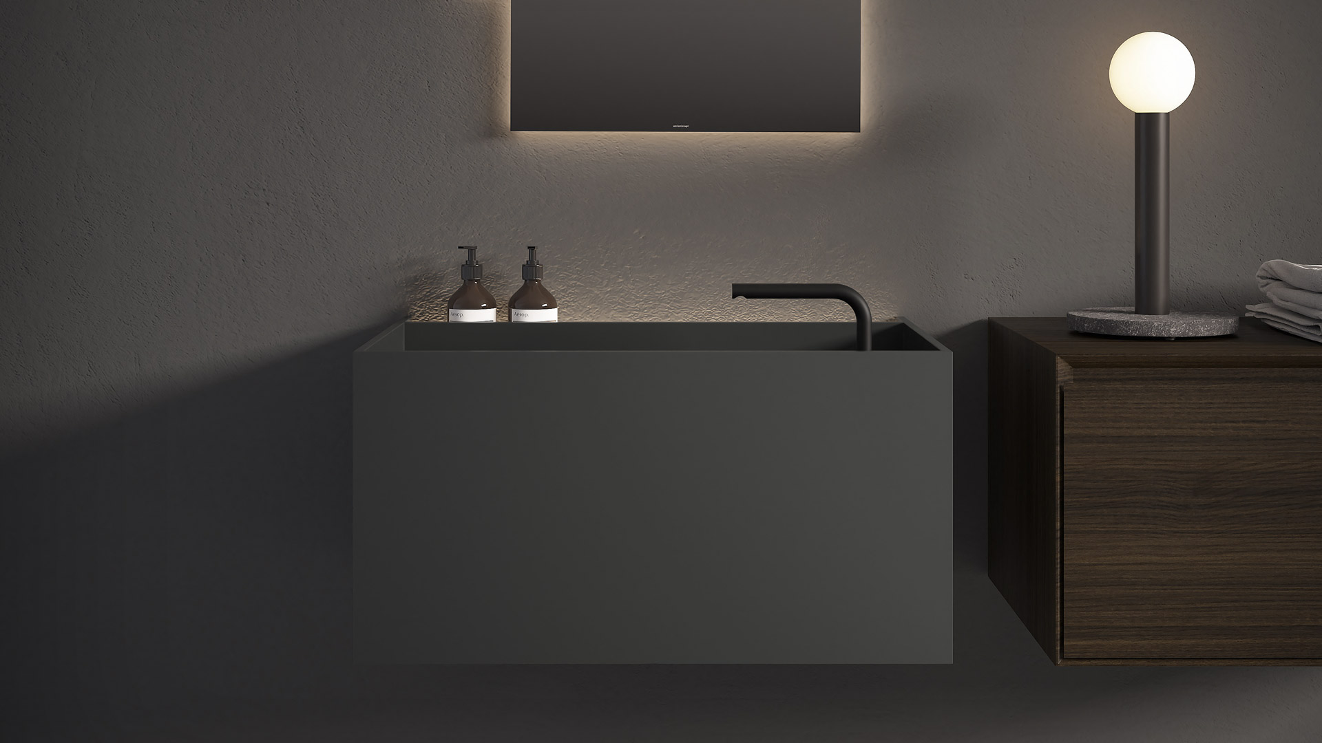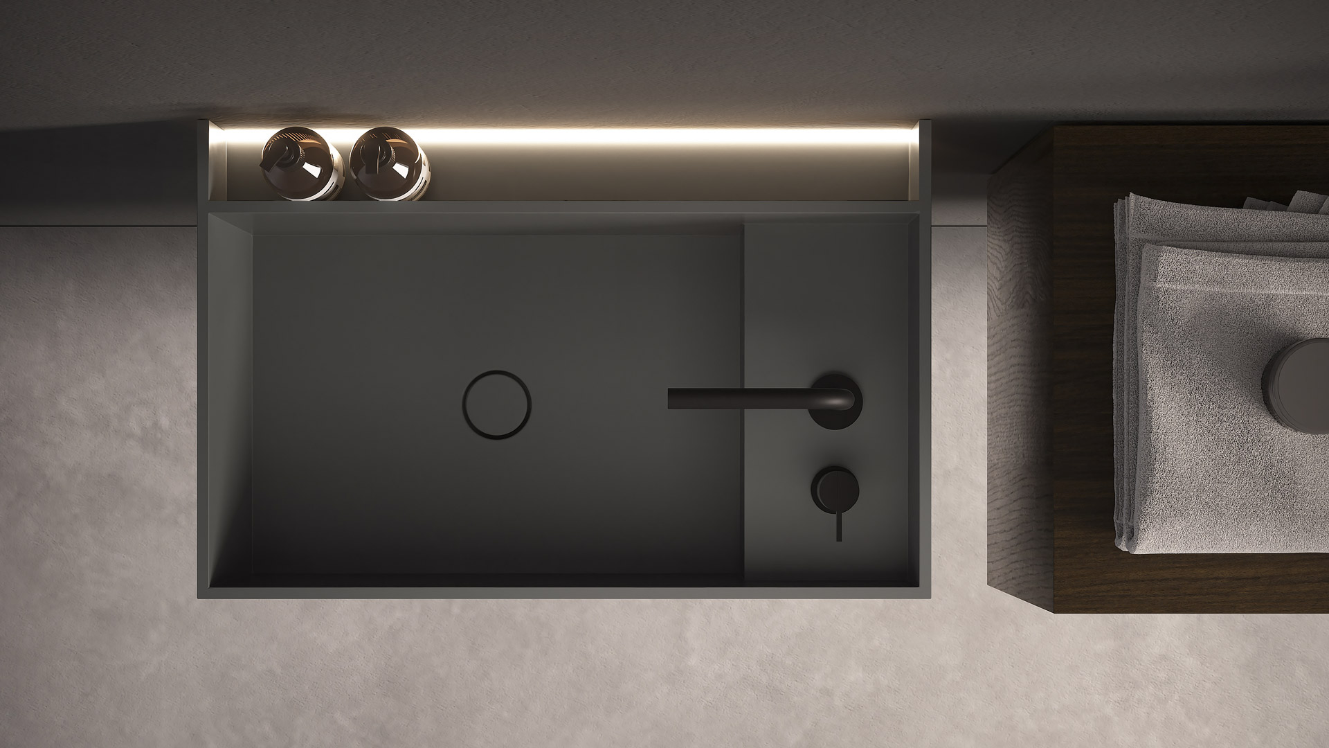 Shapes are square, perpendicular lines draw pure geometries and define volumes with different functionalities, and space is best utilized through balanced proportions, subtle thicknesses, and measured heights. The available sizes and configuration combinations make each sink unique. Stone is the great protagonist of these monoliths, the shape of MyStreet comes from the knowledge of the material and man's work to give it a contemporary shape. The collection comes to life from the series of tops already presented by antoniolupi, and because of this, in addition to the sink, it is arranged to hold everyday objects that find a place in a dedicated and illuminated space near the side.