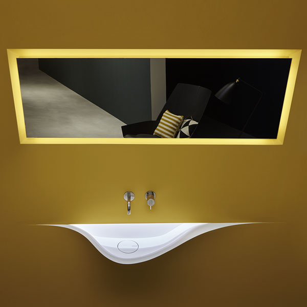 Function becomes an unusual and exclusive object. The role of the basin defines the final aspect through an organic form that welcomes water that comes from the wall. Silenzio is an integrated sink that becomes one with the wall, it is a cut of light the underlines a sinuous course, it describes a creative gesture from which everything originates.