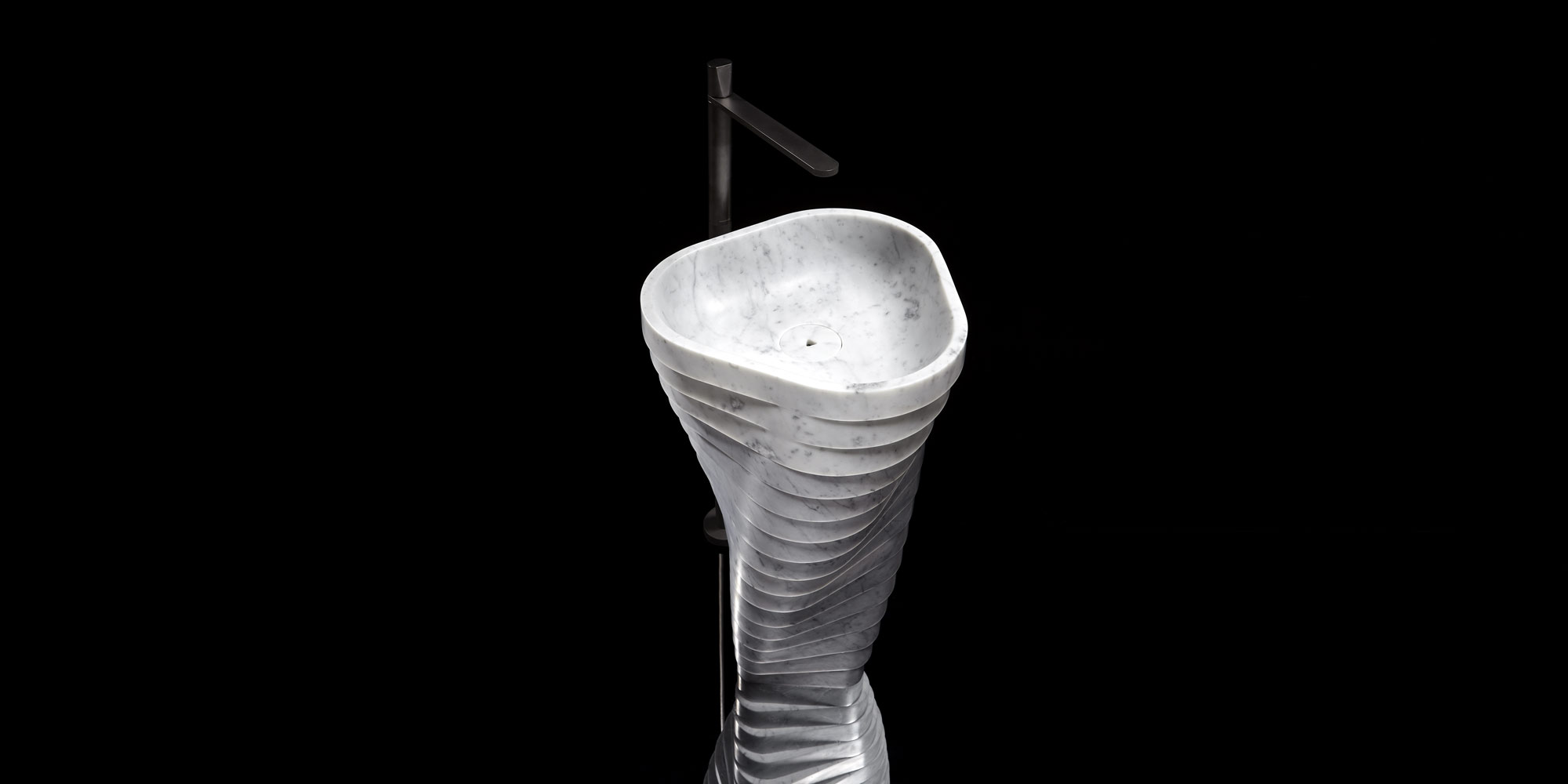 A generating force, an energy that emanates from the very essence of matter and that finds in water the privileged means to provide well-being and comfort. A new project that is part of the research traced with Intreccio to deepen the theme of contemporary matter, to investigate the complex dialogue between immobility and dynamism, between solidity and lightness, between reality and appearance. Vortice is the new free standing Carrara marble sink designed by Paolo Ulian for antoniolupi