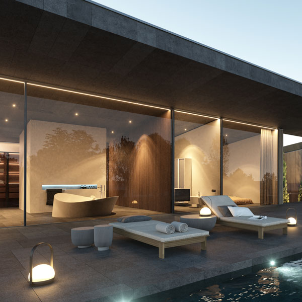 The use of stone to delineate the protruding horizontal partitions of the façades, wood for the opaque walls that delimit the volume and glass to complete the mimesis with the surrounding greenery, describe the elegant and modern image of this precious treasure in constant dialogue with light. It is precisely the extraordinary light of Sicily that becomes a tool of design to give life to unprecedented perspectives within the rooms, both during the day and at sunset. The interpenetration of the greenery, favored above all by the internal patio that interrupts the sequence of the rooms, defines the perfect fusion between nature and man made. Technology and design meet in all the antoniolupi collections used at Villa Etna, which testify to the company's sartorial approach and the ability of the elements to embellish the micro-architecture of the environments, giving life to a sophisticated style synonymous with culture and "know-how", two of the themes that distinguish this truly unique territory.