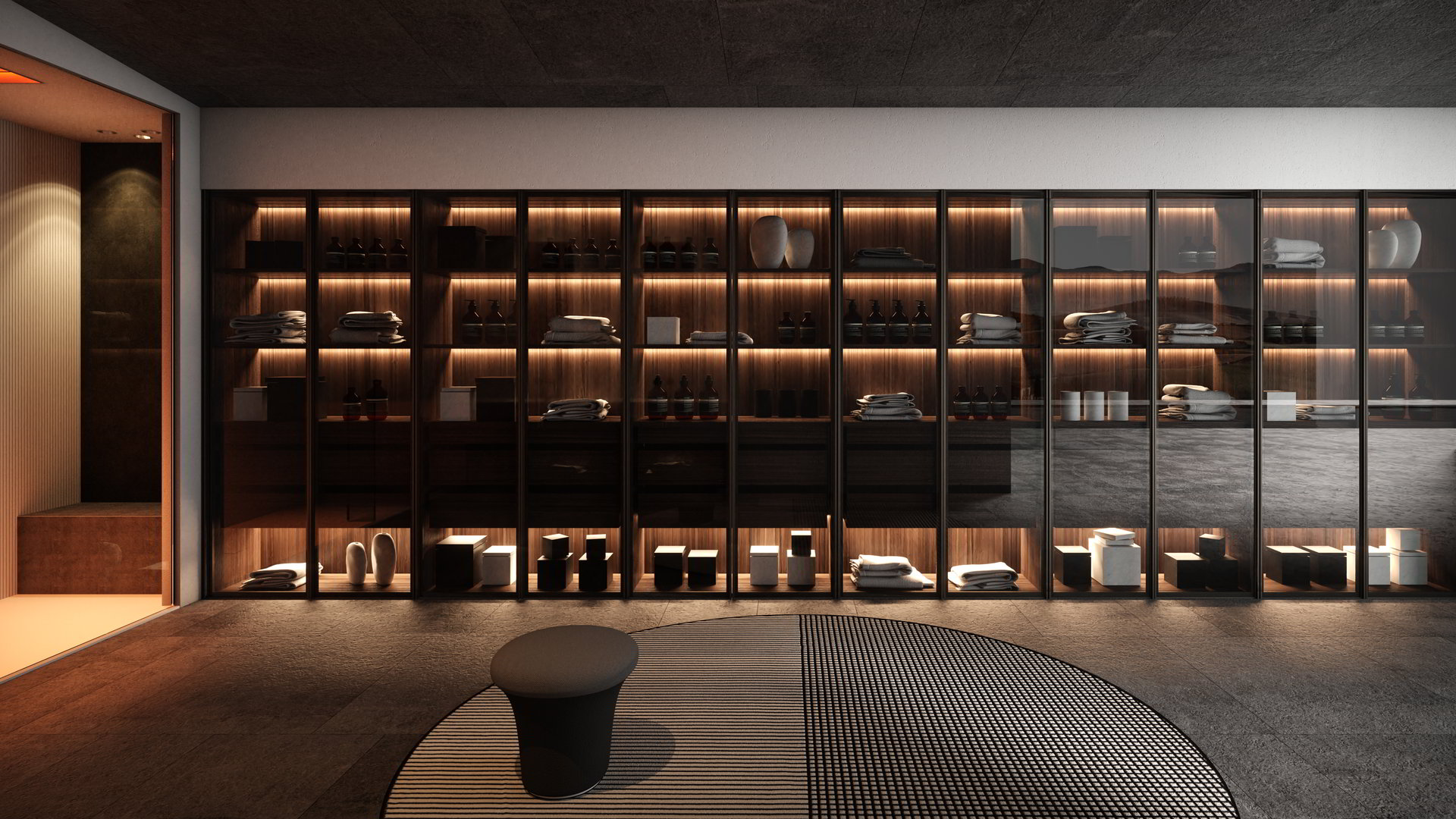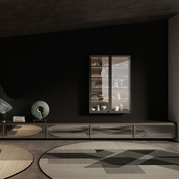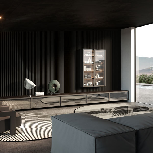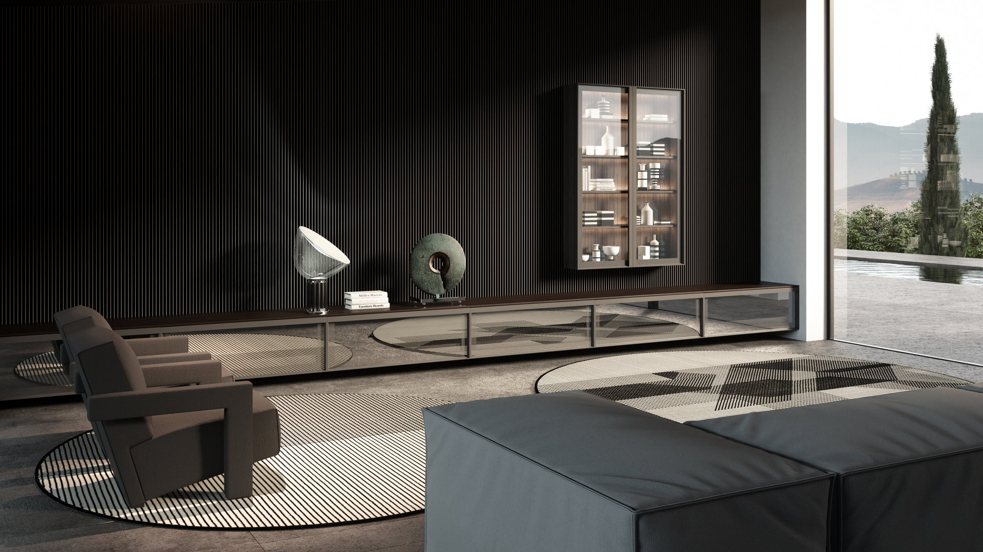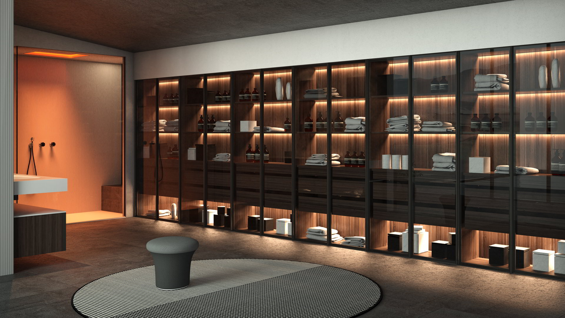 Collections differing in personality and character, but united by a coherence of style that gives taste and elegance to the entire house. Starting with the Dune freestanding bathtub designed by Mario Ferrarini which occupies the center of the master bathroom on the ground floor and offers absolute relaxation with a direct view of the outside, continuing with the series of Bespoke and BeMade containers designed by Carlo Colombo, where elegance and the richness of the finishes and materials furnish different environments. The use of mirrored doors lightens the image of the volumes and expands the perspectives by multiplying the paths drawn by the surfaces in the space.